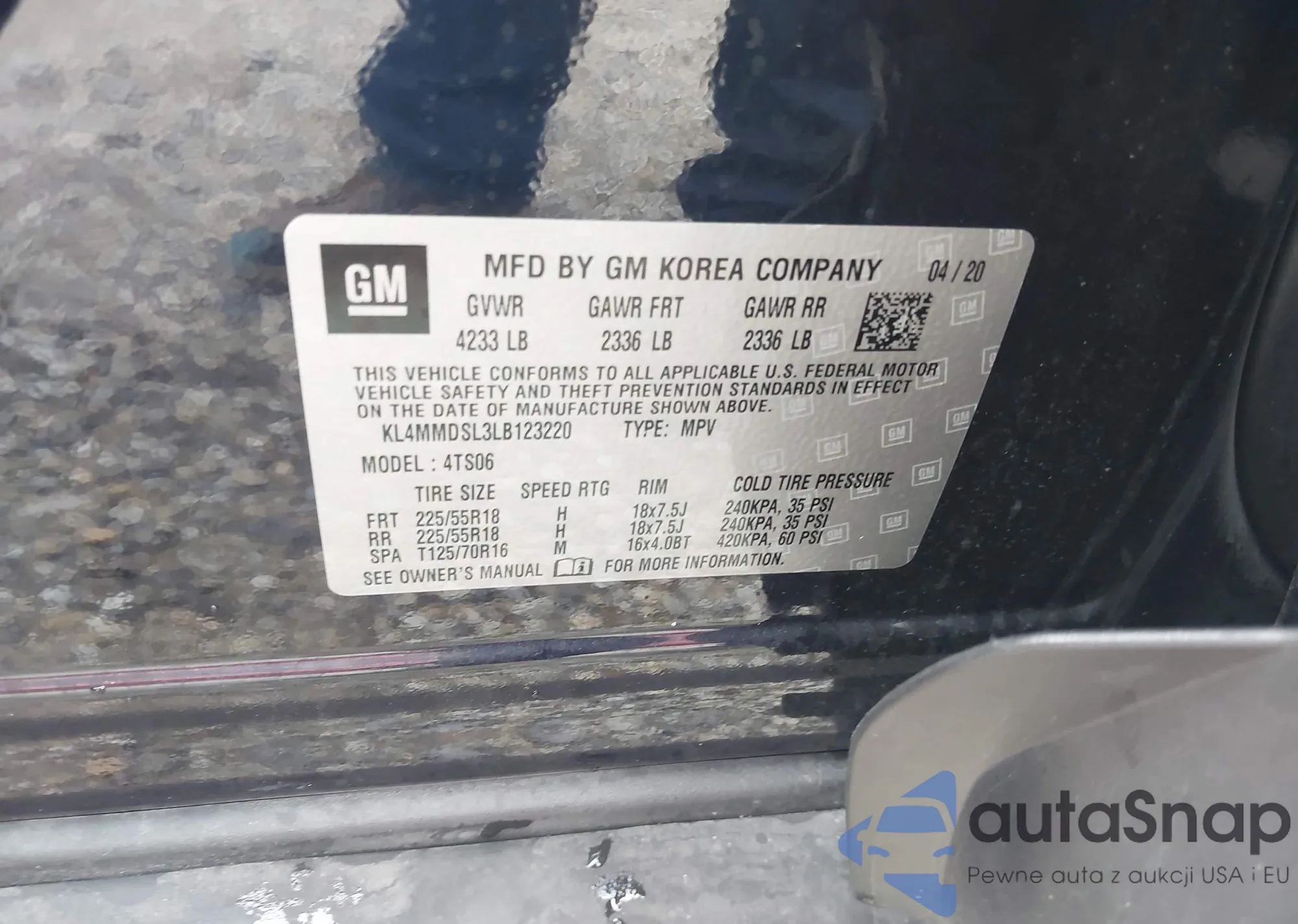 VIN: KL4MMDSL3LB123220