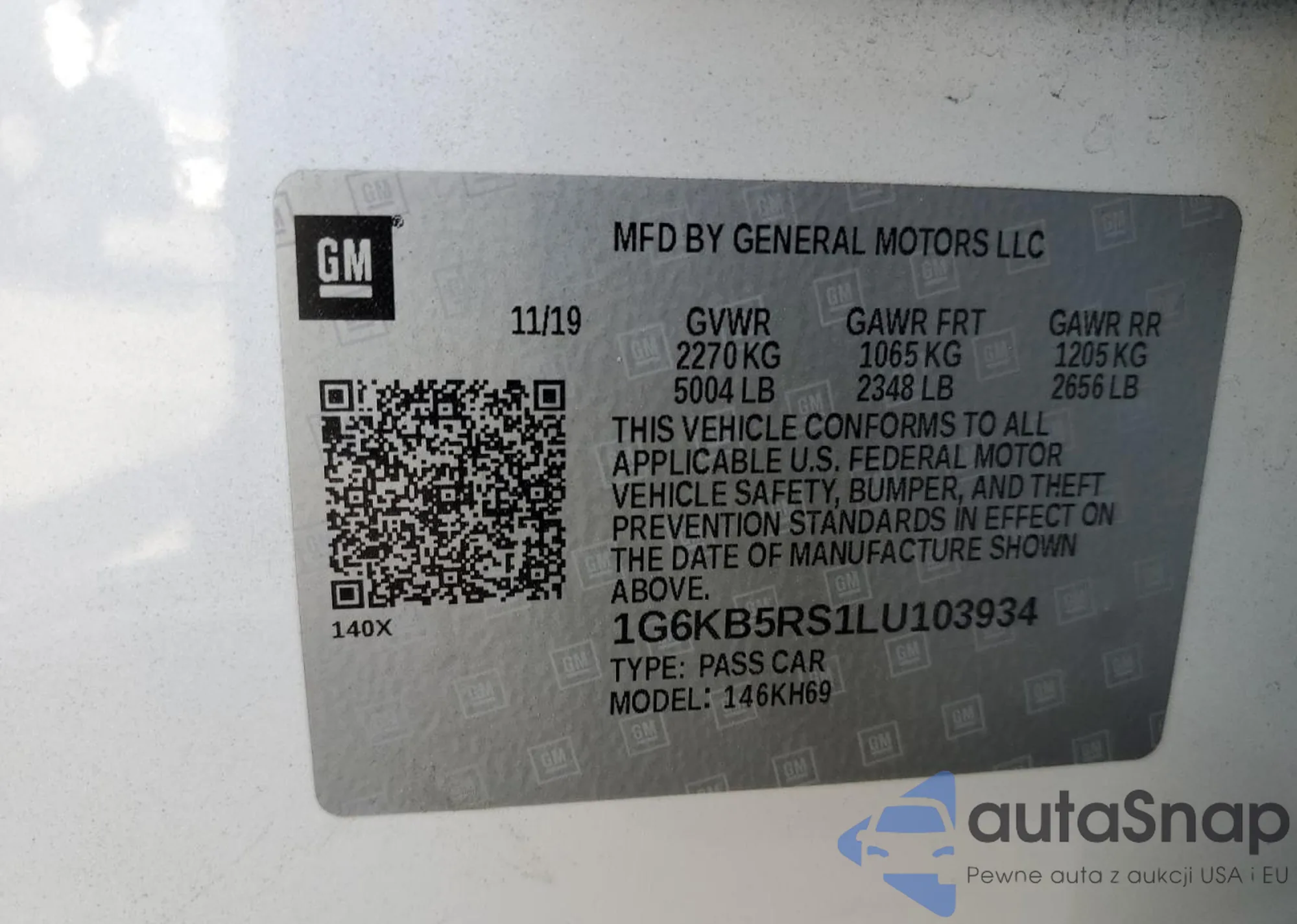 VIN: 1G6KB5RS1LU103934