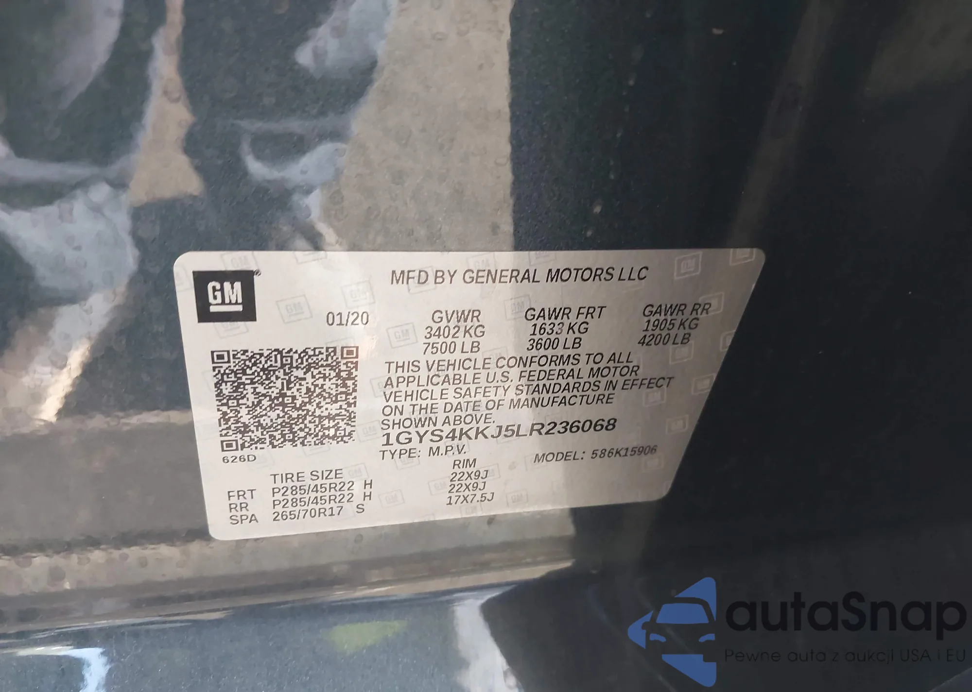 • VIN: 1GYS4KKJ5LR236068
