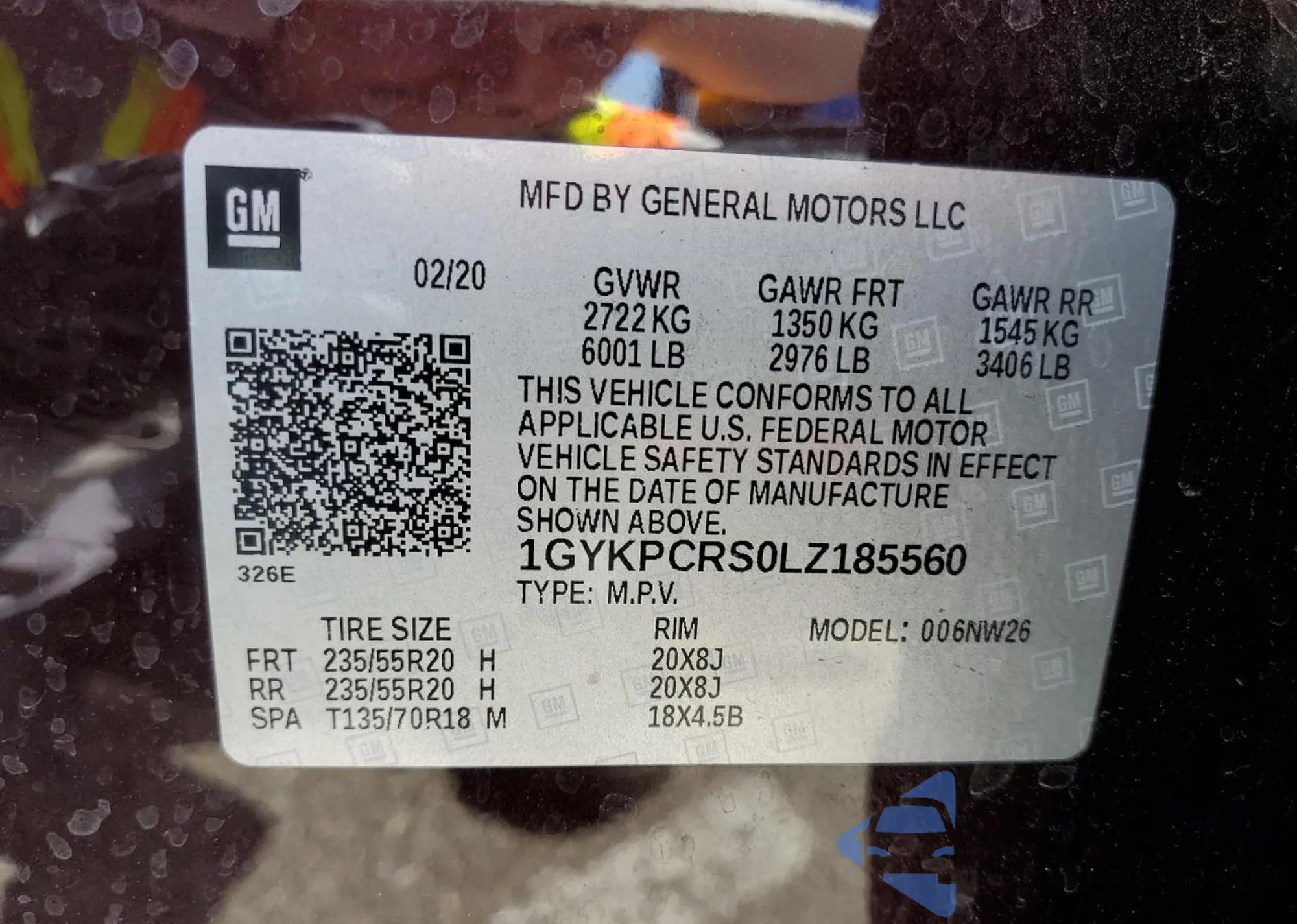 VIN: 1GYKPCRS0LZ185560