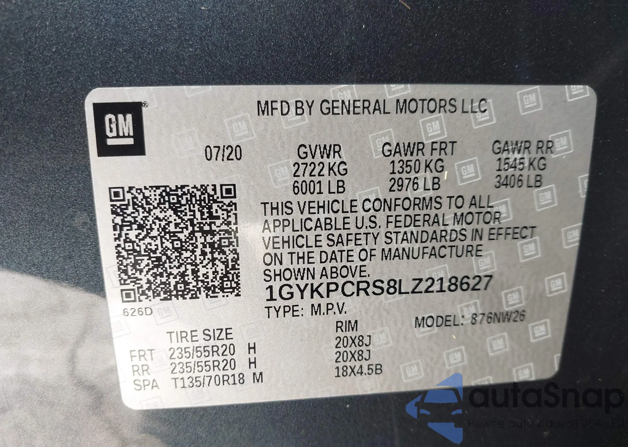 VIN: 1GYKPCRS8LZ218627