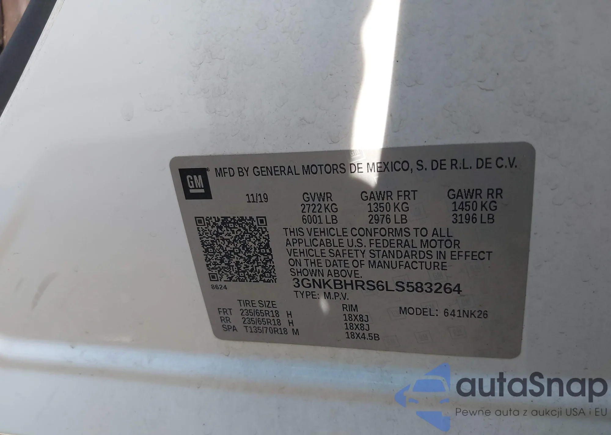 VIN: 3GNKBHRS6LS583264