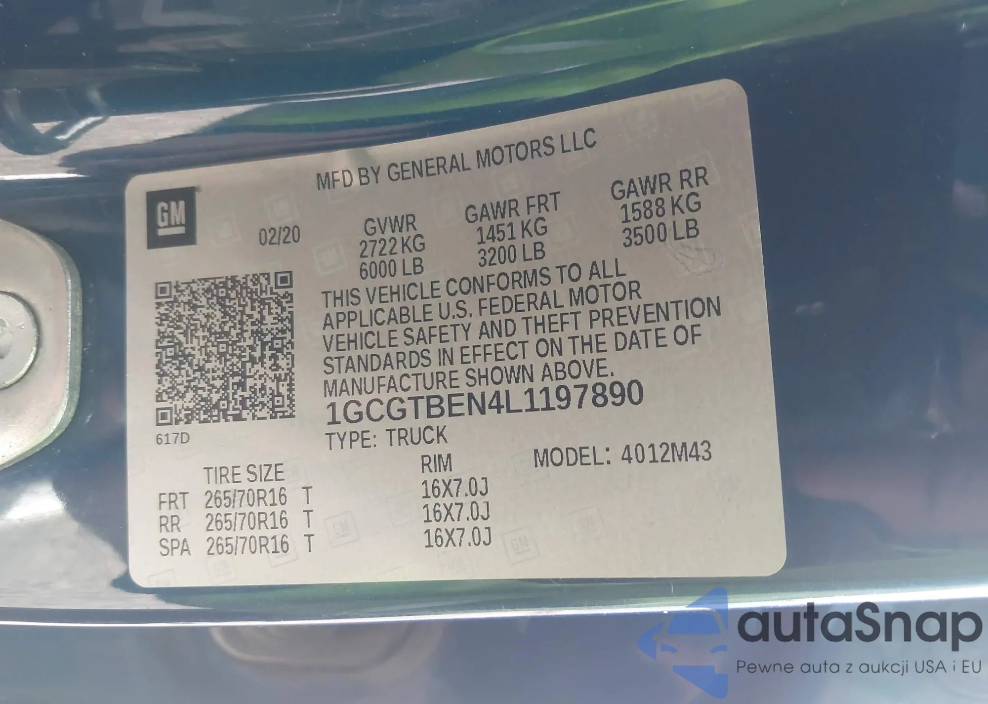 VIN: 1GCGTBEN4L1197890