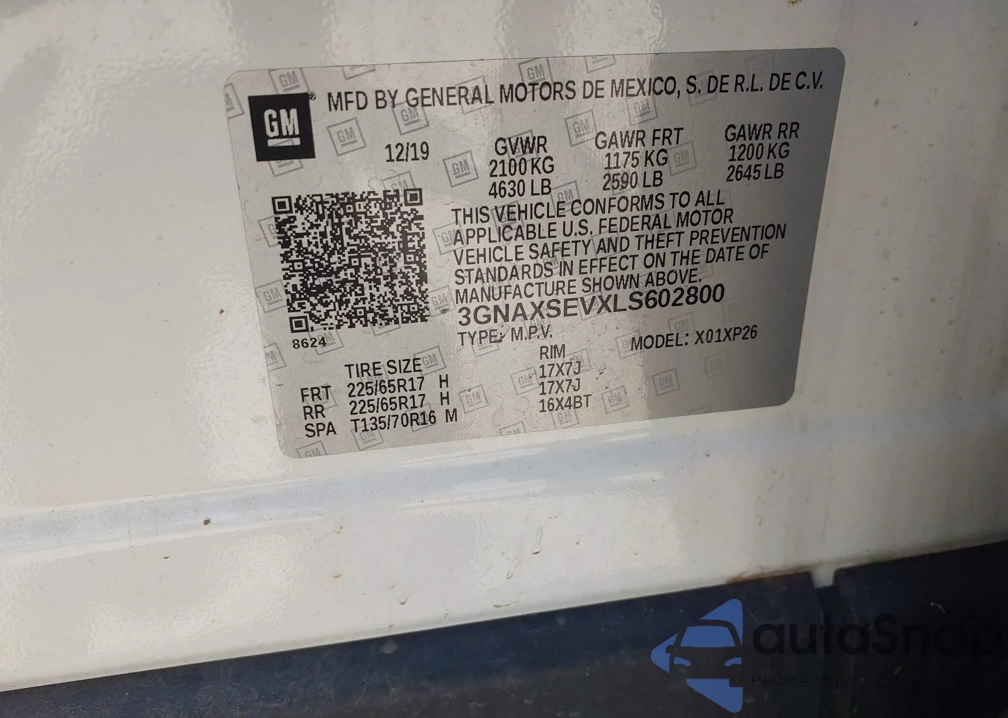 VIN: 3GNAXSEVXLS602800