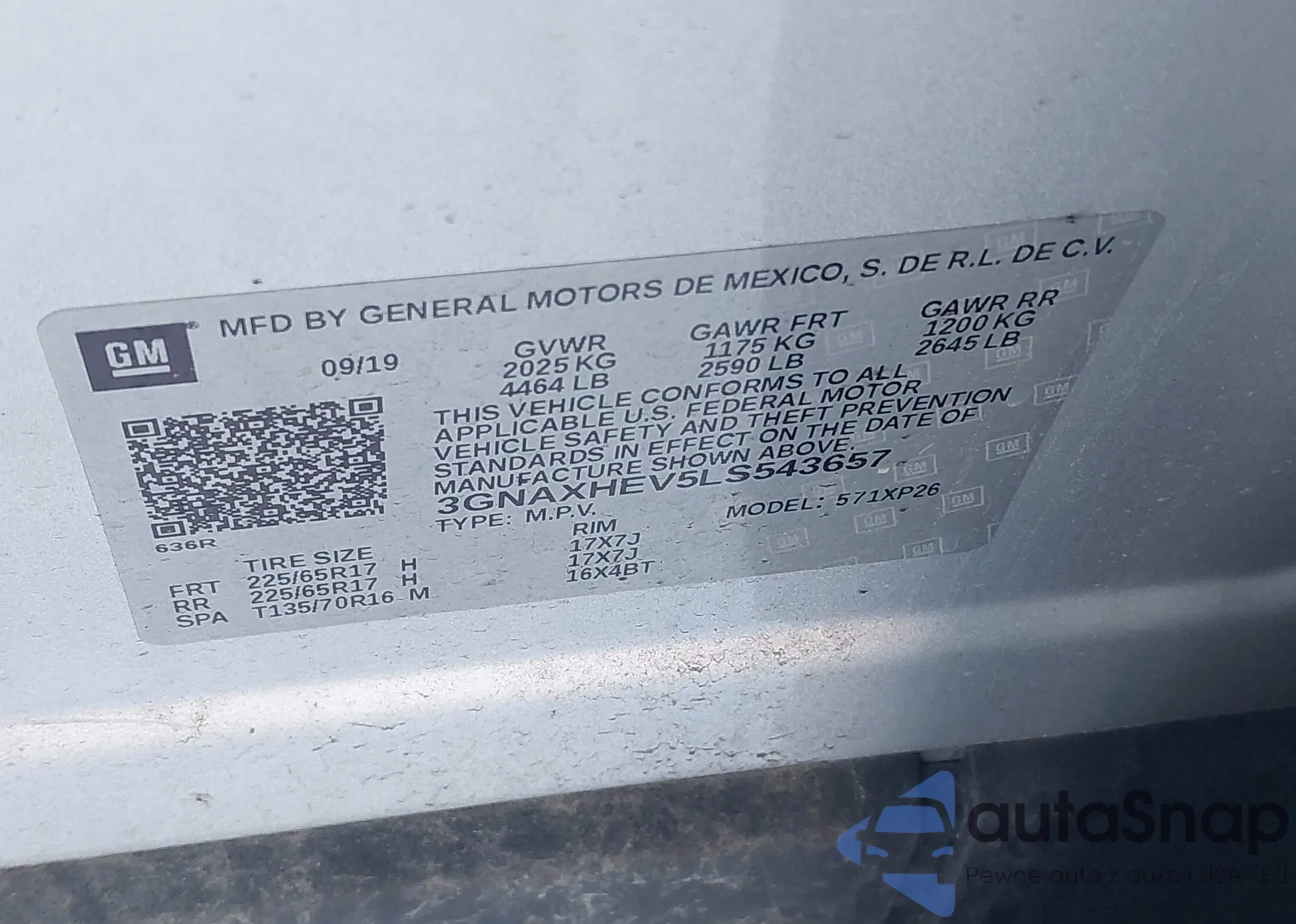 VIN: 3GNAXHEV5LS543657