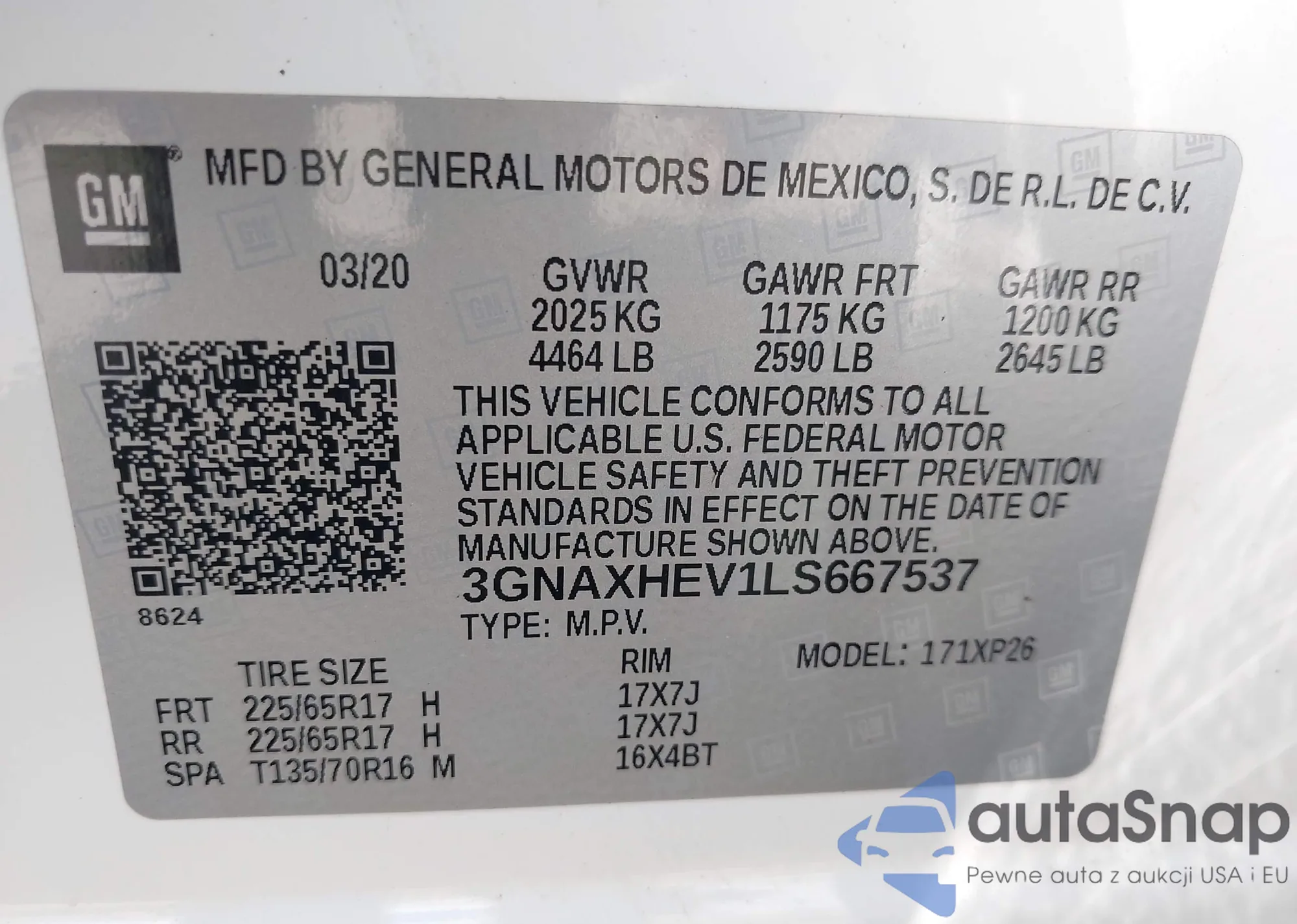 VIN: 3GNAXHEV1LS667537