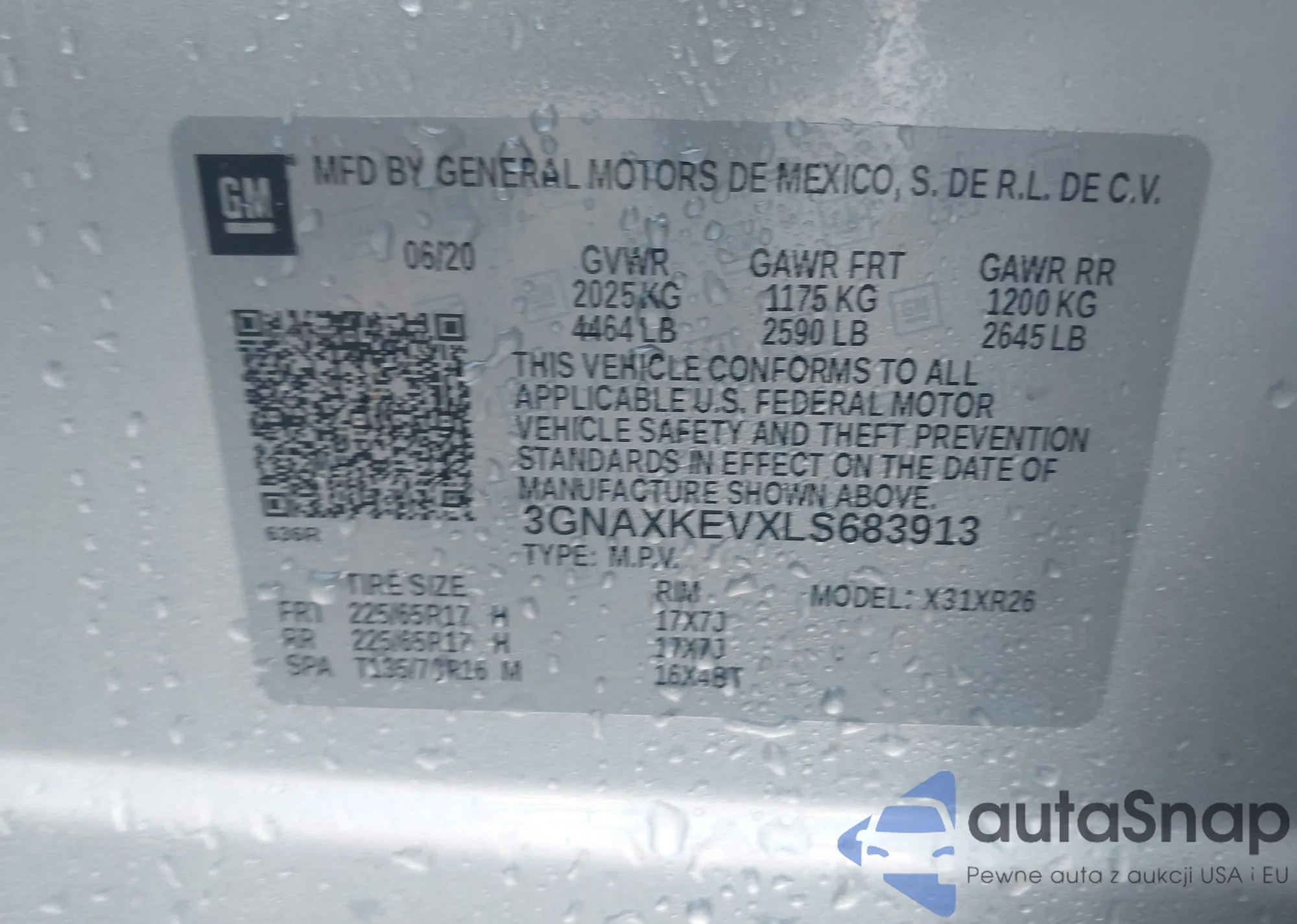 VIN: 3GNAXKEVXLS683913