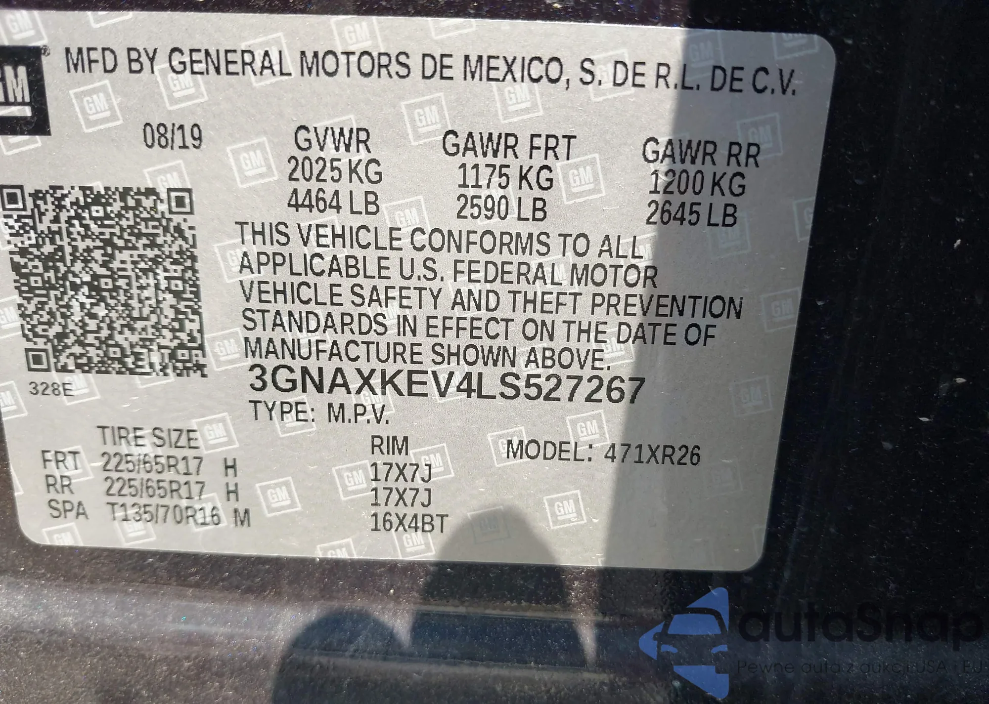 VIN: 3GNAXKEV4LS527267