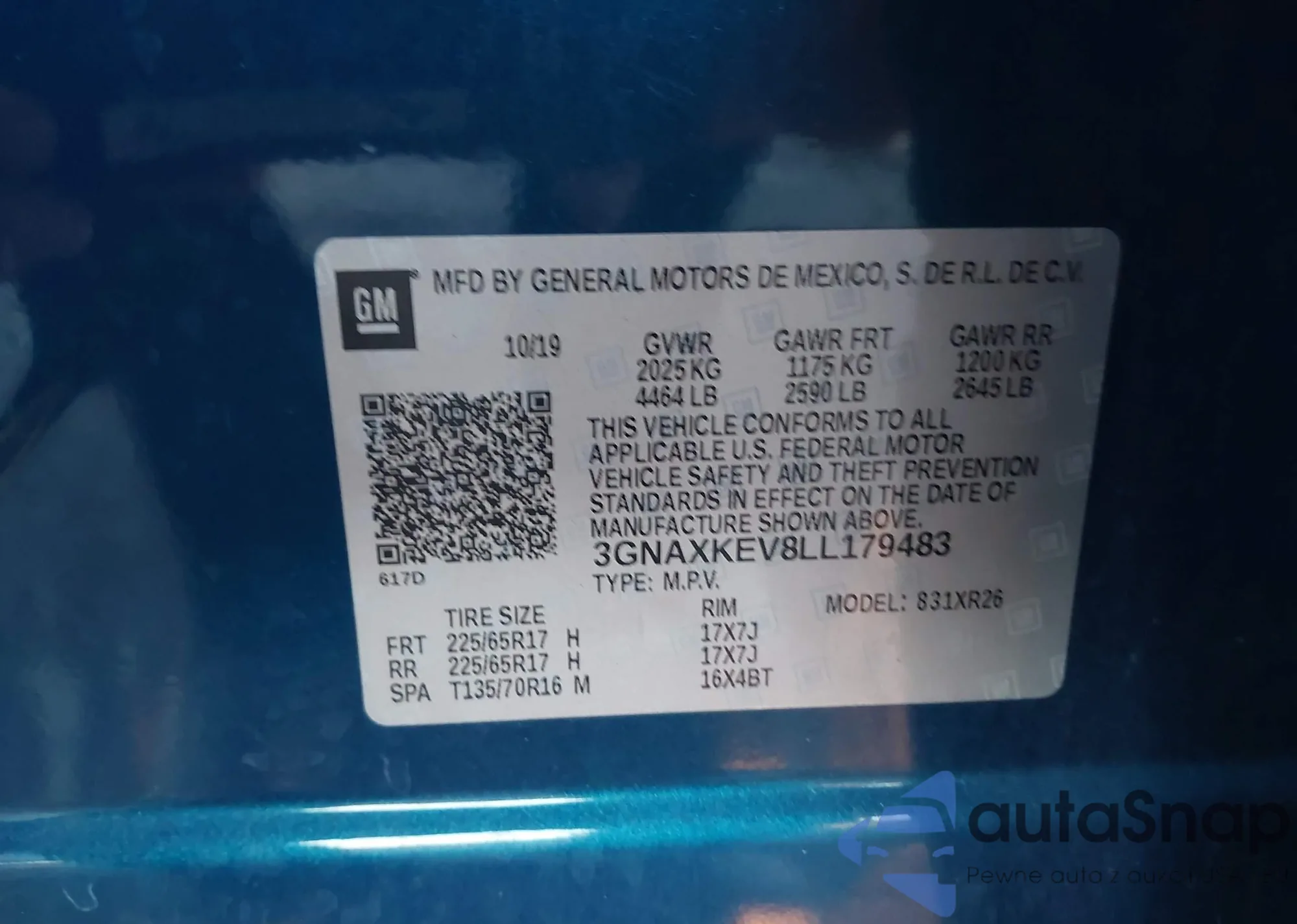VIN: 3GNAXKEV8LL179483