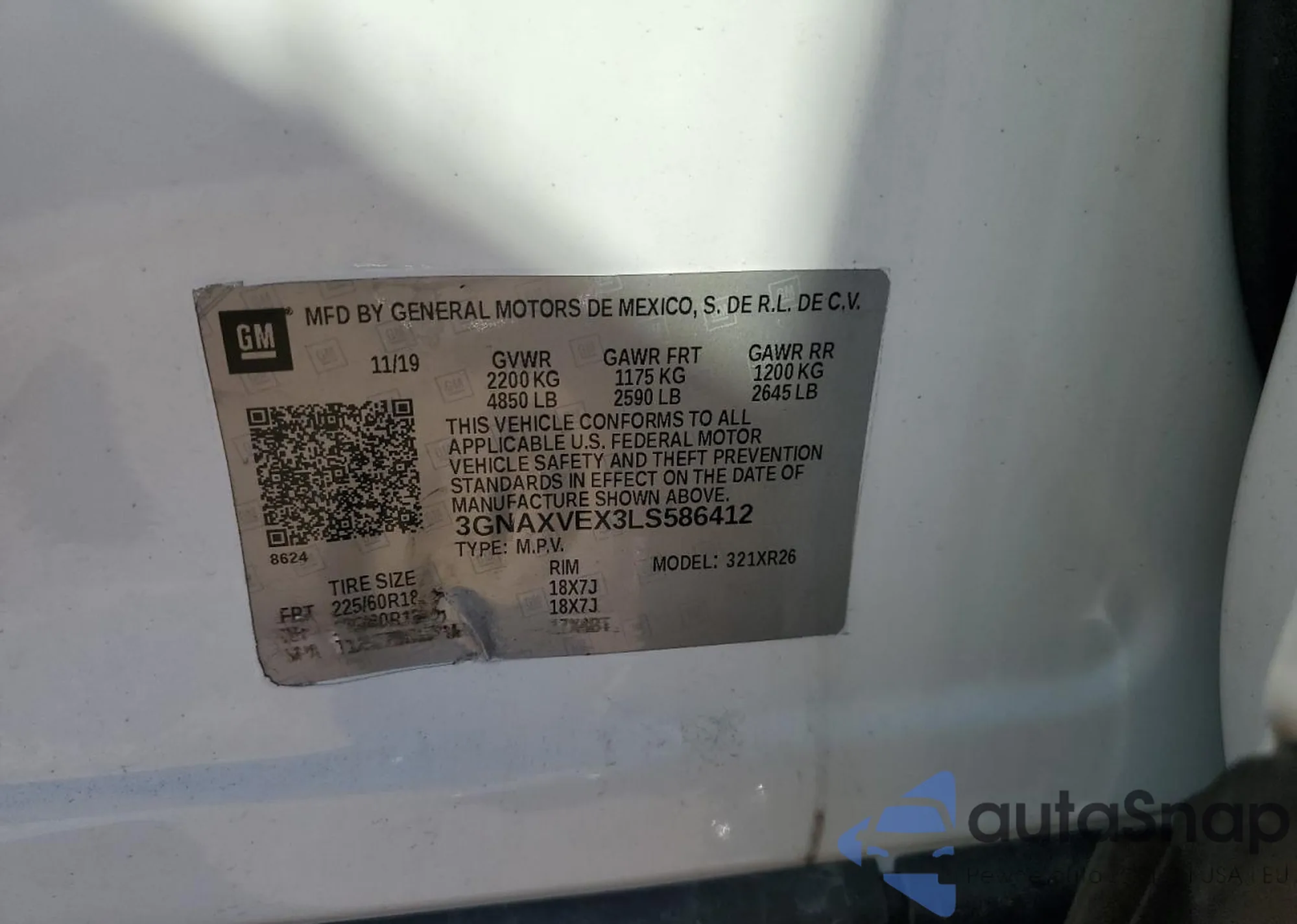 VIN: 3GNAXVEX3LS586412