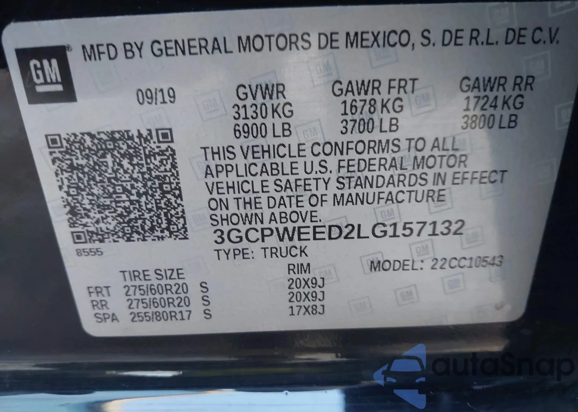 • VIN: 3GCPWEED2LG157132