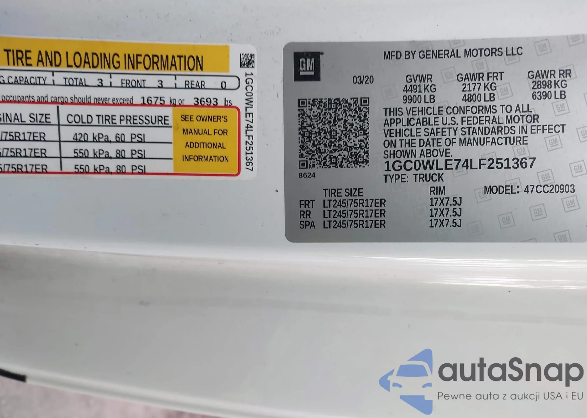VIN: 1GC0WLE74LF251367