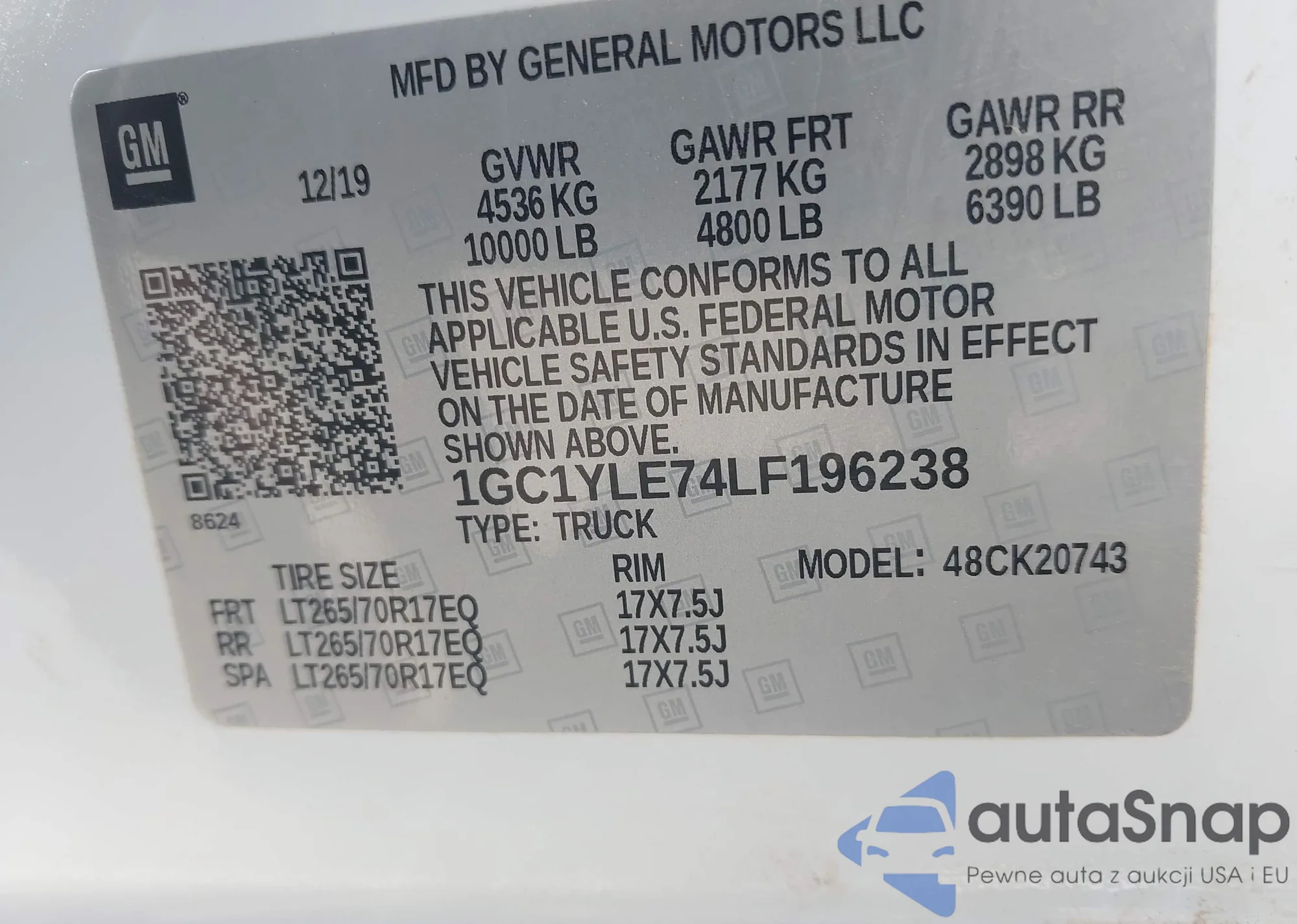 VIN: 1GC1YLE74LF196238