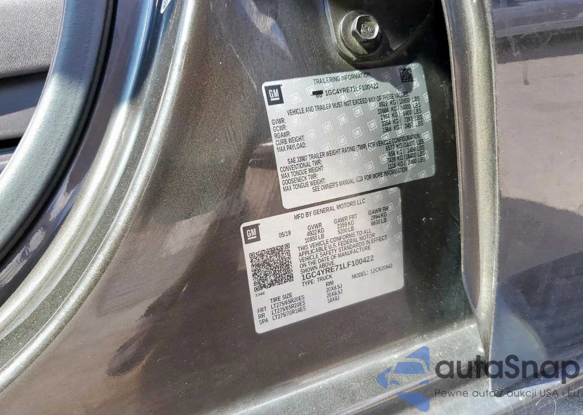 VIN: 1GC4YRE71LF100422
