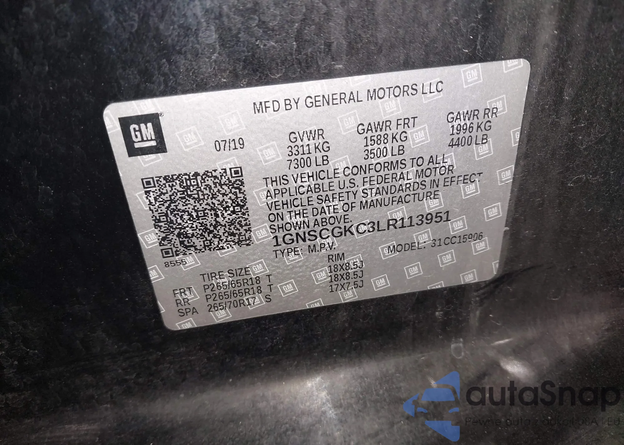 VIN: 1GNSCGKC3LR113951