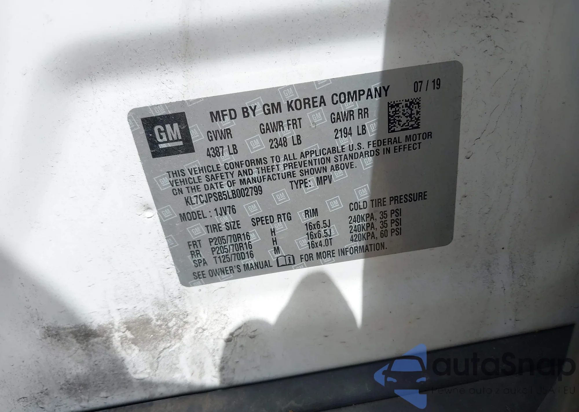VIN: KL7CJPSB5LB002799