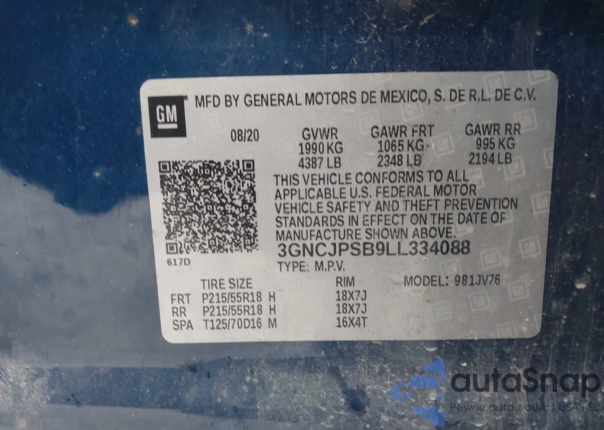 VIN: 3GNCJPSB9LL334088