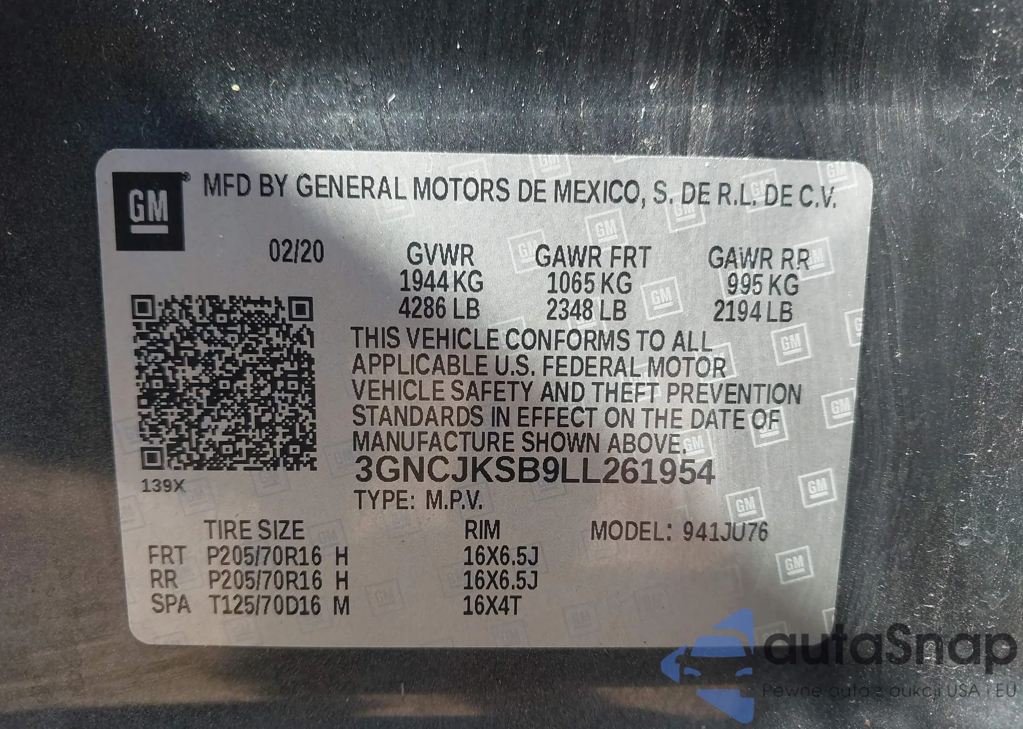 VIN: 3GNCJKSB9LL261954