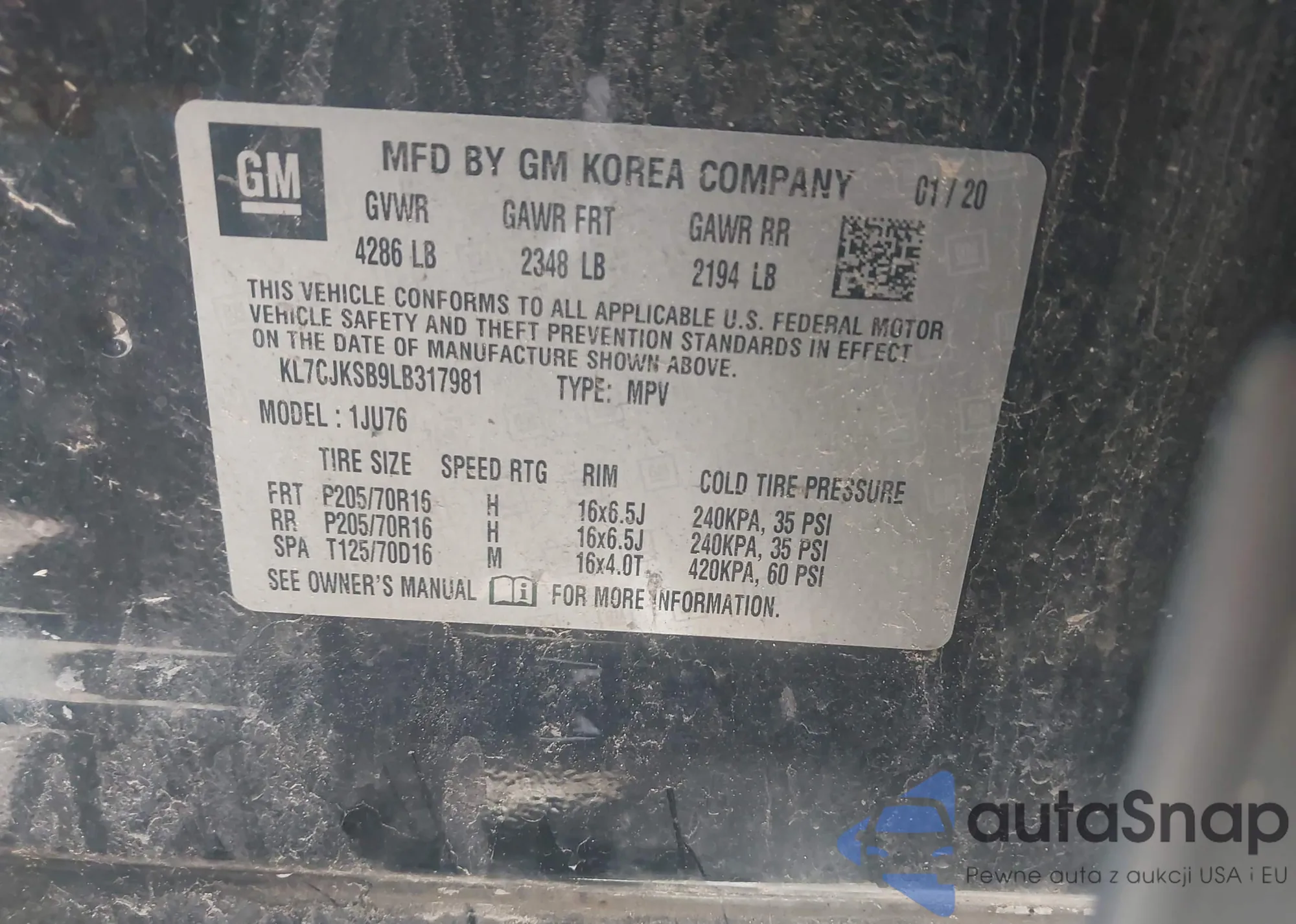 VIN: KL7CJKSB9LB317981