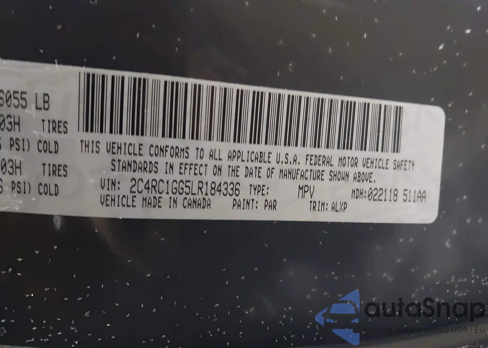 • VIN: 2C4RC1GG5LR184336