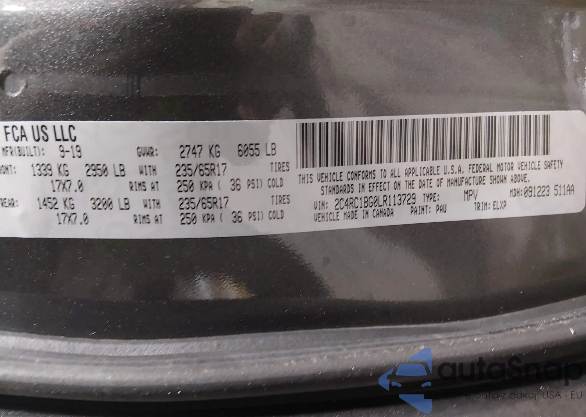 Samochód Chrysler Pacifica 2020 (VIN 2C4RC1BG0LR113729) nie był wcześniej licytowany. Dokumenty są czyste, przebieg odpowiada lub jest niższy niż średnia rynku. Sprzedaje go firma ubezpieczeniowa – polecamy zakup. Dostawa do portu zajmie ok. 6–8 tygodni.