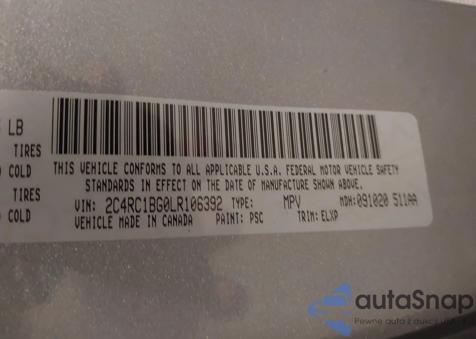 VIN: 2C4RC1BG0LR106392