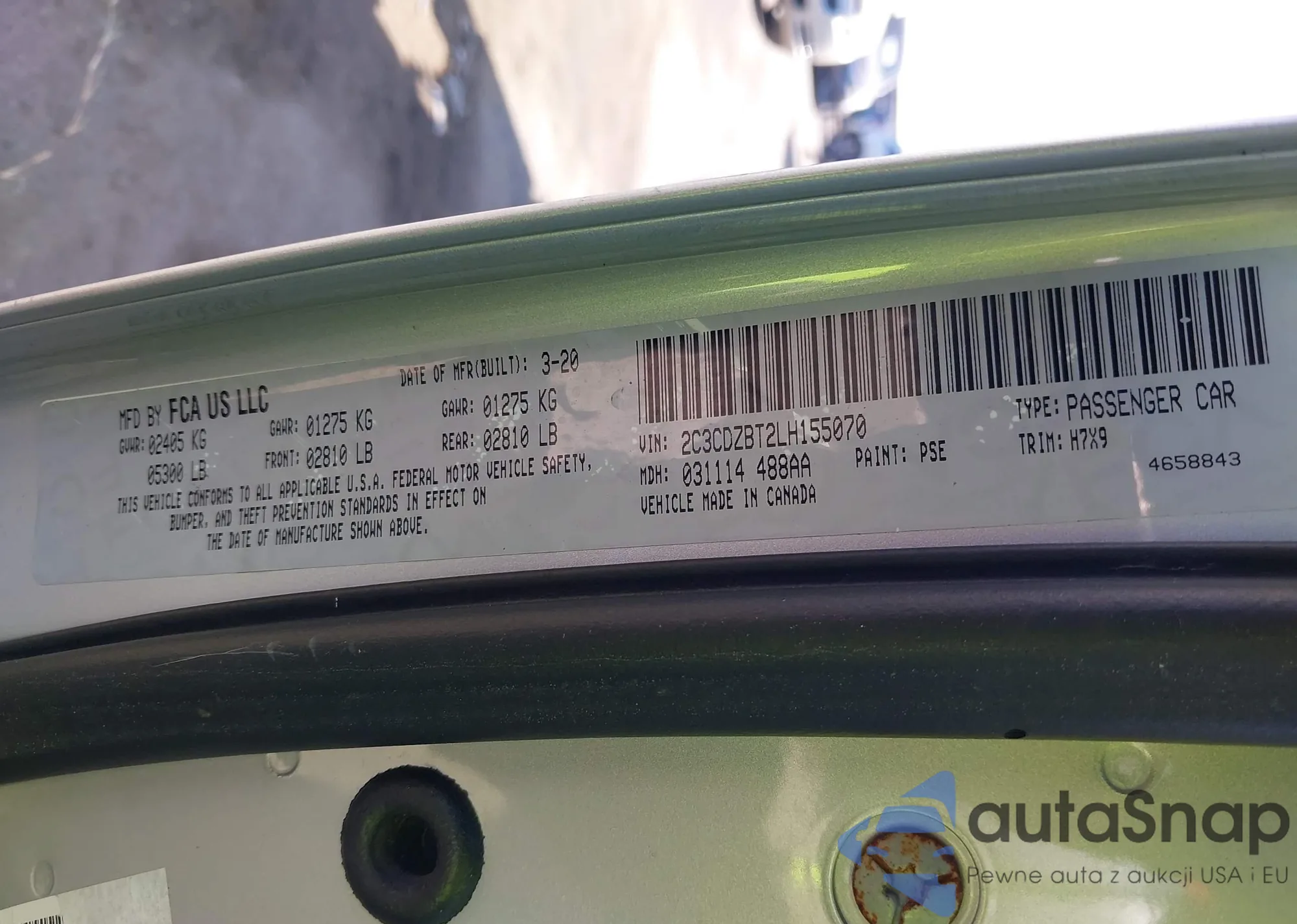 • VIN: 2C3CDZBT2LH155070
