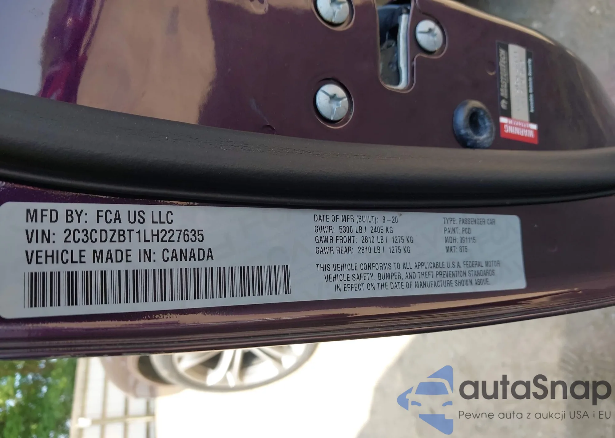 VIN: 2C3CDZBT1LH227635