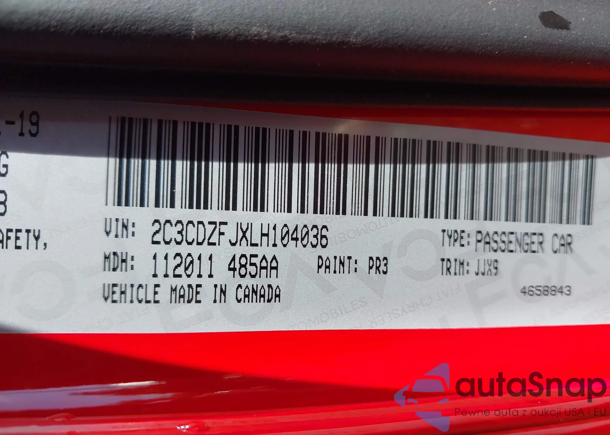 Samochód Dodge Challenger 2020 (VIN 2C3CDZFJXLH104036) nie był wcześniej licytowany. Dokumenty są czyste, przebieg odpowiada lub jest niższy niż średnia rynku. Sprzedaje go firma ubezpieczeniowa – polecamy zakup. Dostawa do portu zajmie ok. 6–8 tygodni.