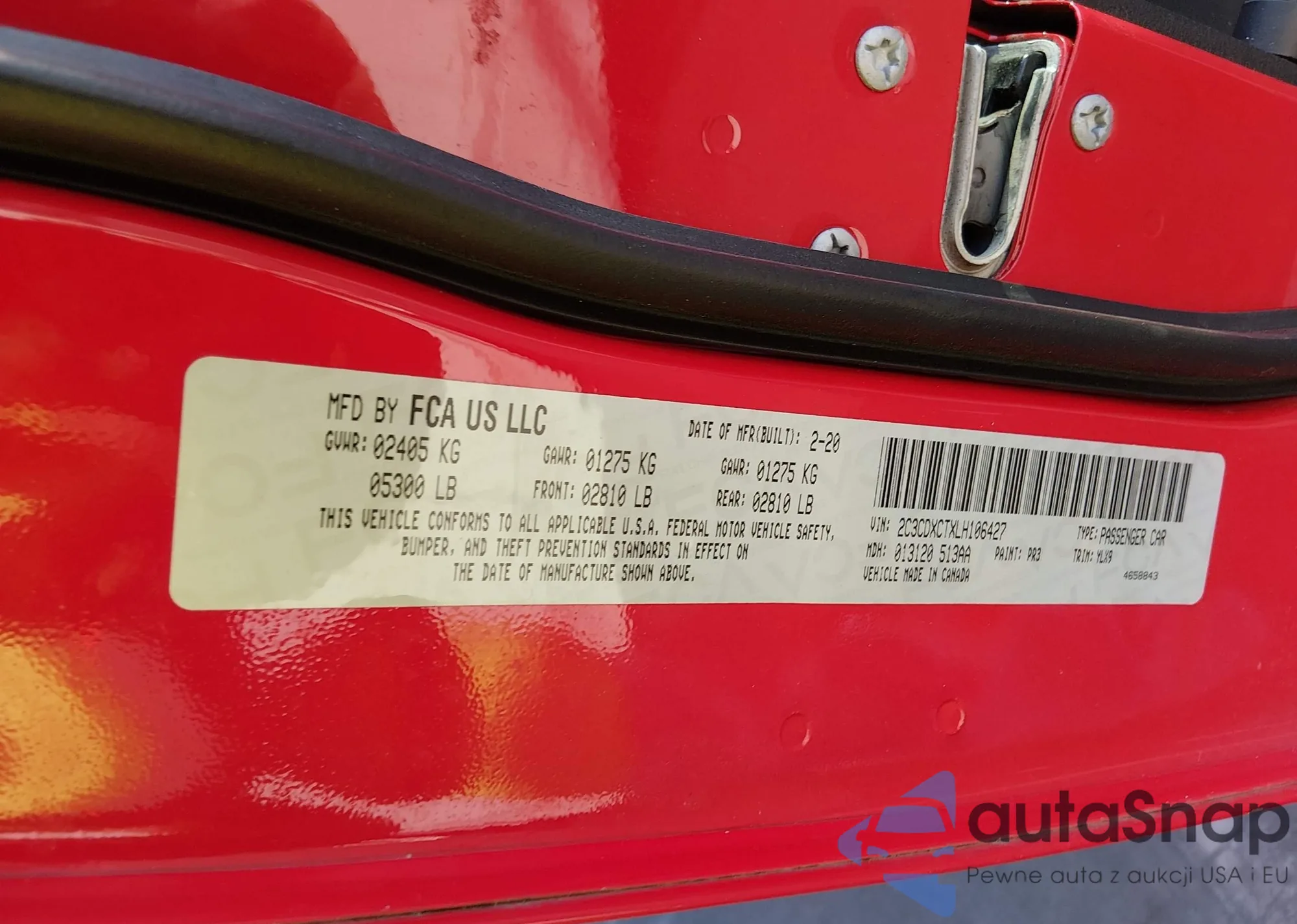 Samochód Dodge Charger 2020 (VIN 2C3CDXCTXLH106427) nie był wcześniej licytowany. Dokumenty są czyste, przebieg odpowiada lub jest niższy niż średnia rynku. Sprzedaje go firma ubezpieczeniowa – polecamy zakup. Dostawa do portu zajmie ok. 6–8 tygodni.