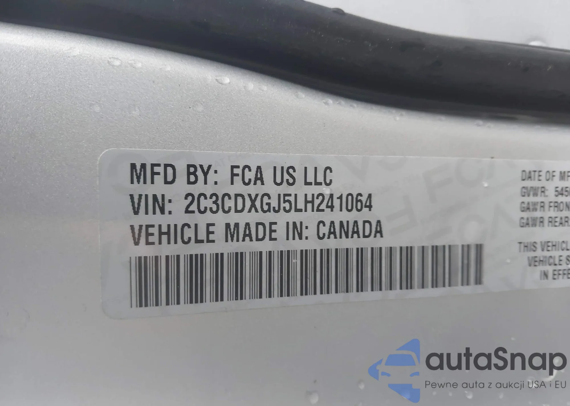 Samochód Dodge Charger 2020 (VIN 2C3CDXGJ5LH241064) był już licytowany 1 razy i/lub sprzedaje go niezweryfikowany sprzedawca. Zalecamy raport Carfax i potwierdzenie możliwości rejestracji pojazdu przed zakupem.