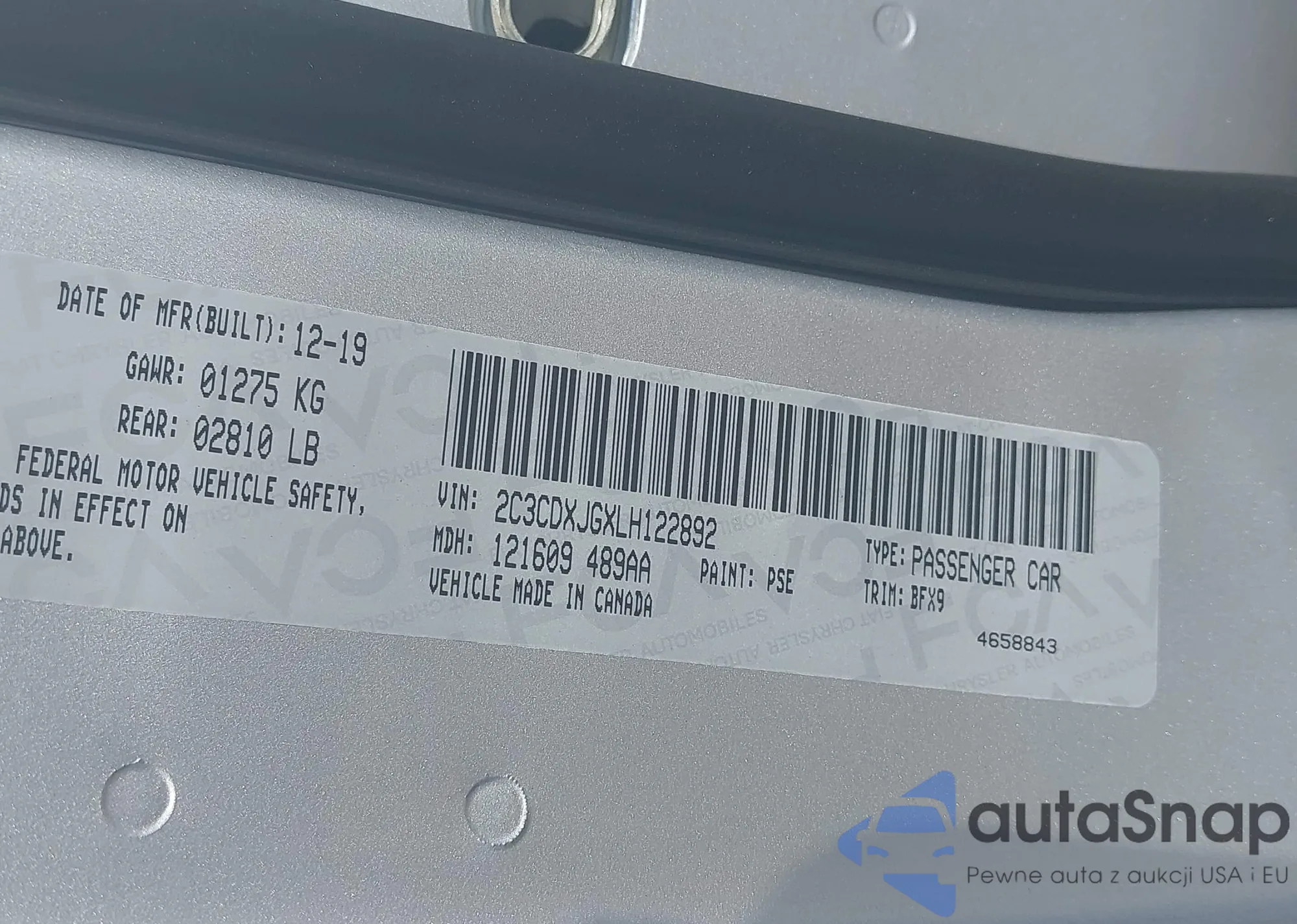 • VIN: 2C3CDXJGXLH122892