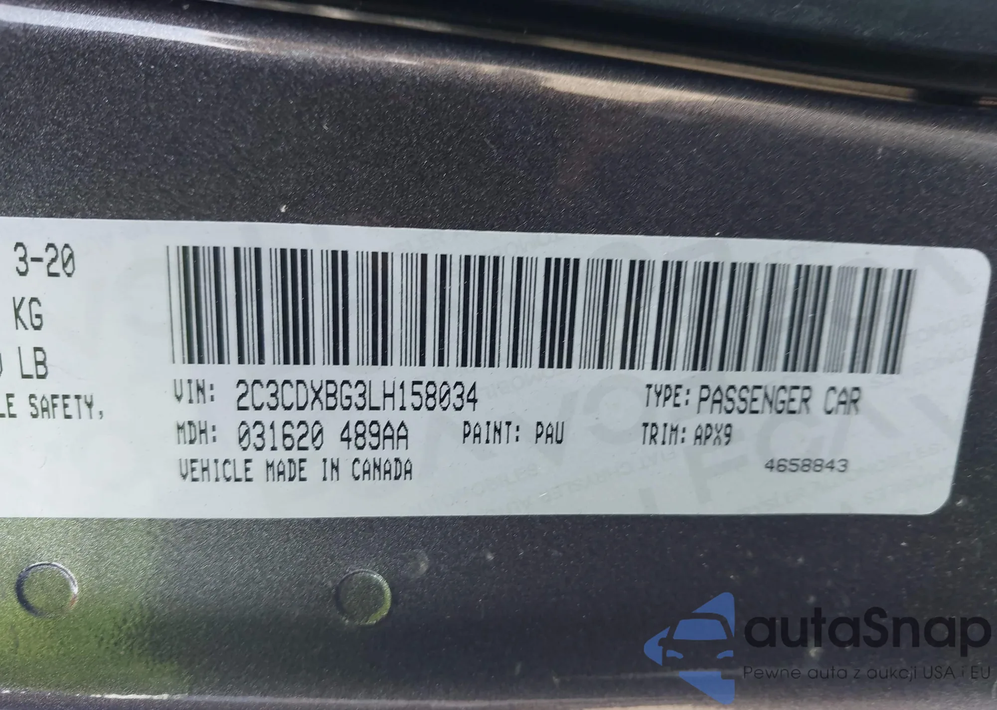 VIN: 2C3CDXBG3LH158034