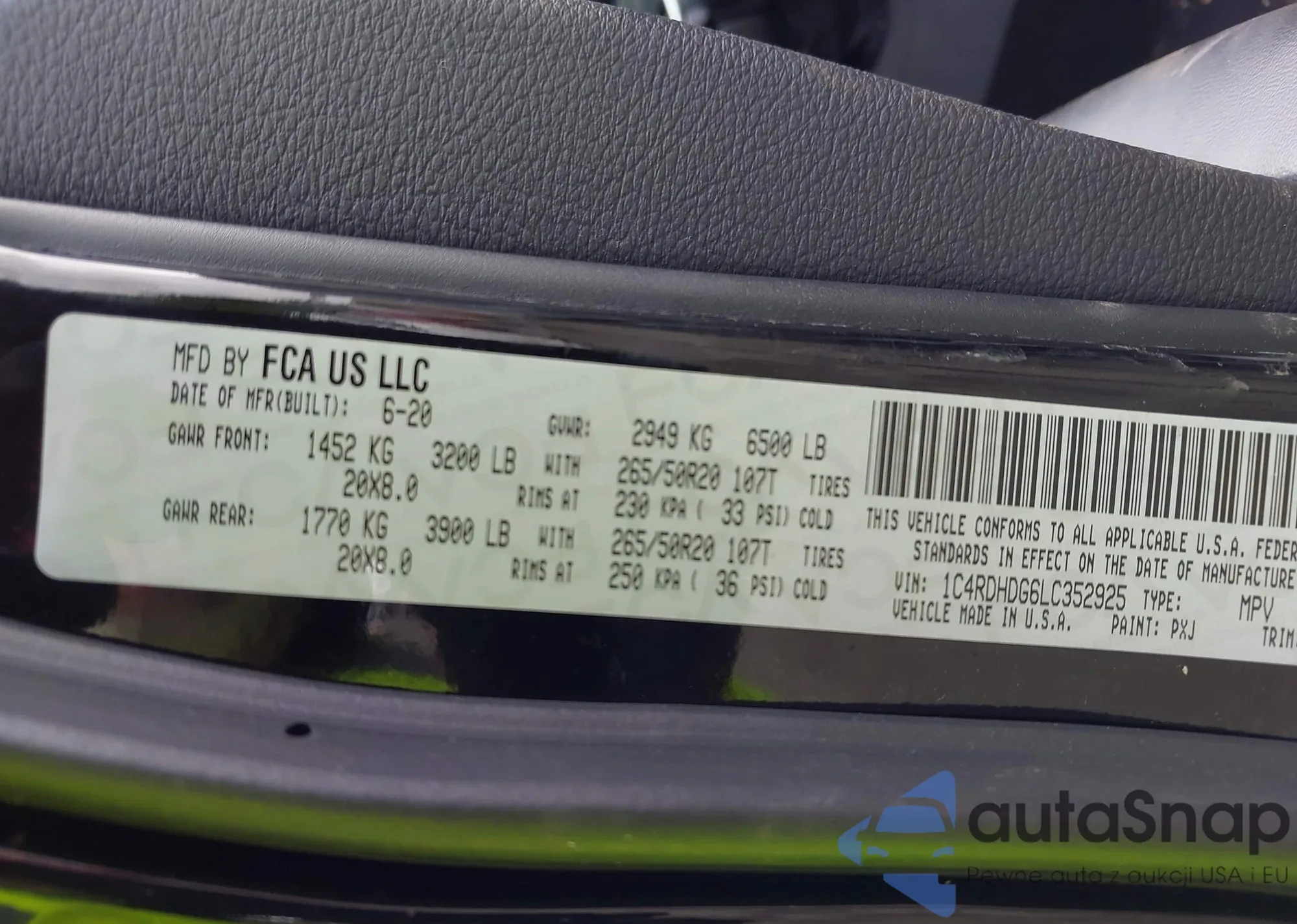 VIN: 1C4RDHDG6LC352925