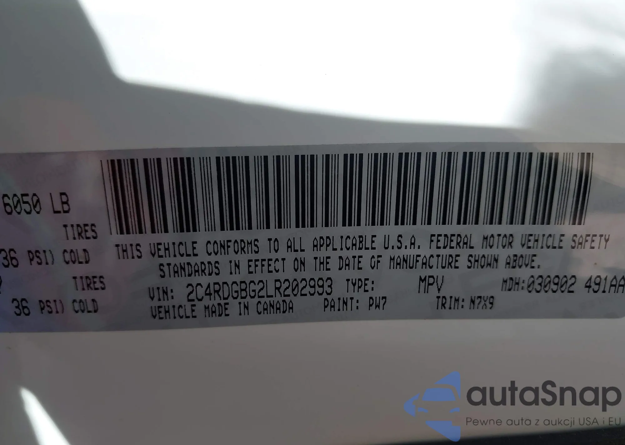 Samochód Dodge Caravan 2020 (VIN 2C4RDGBG2LR202993) sprzedaje go niezweryfikowany sprzedawca. Zalecamy raport Carfax i potwierdzenie możliwości rejestracji pojazdu przed zakupem.