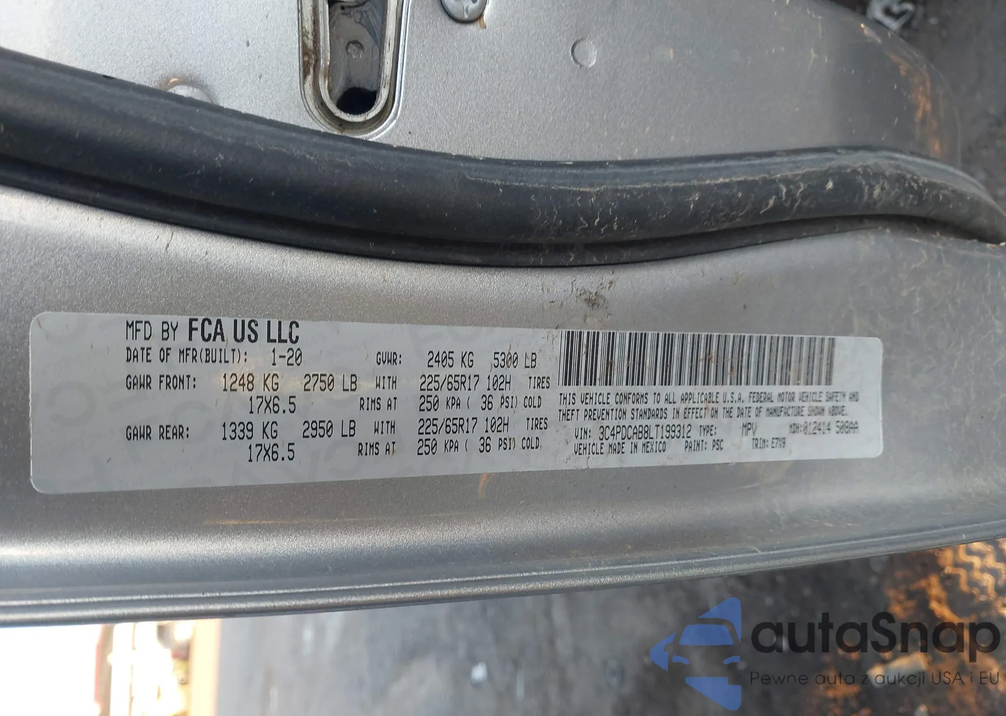 Samochód Dodge Journey 2020 (VIN 3C4PDCAB8LT199312) był już licytowany 1 razy i/lub sprzedaje go niezweryfikowany sprzedawca. Zalecamy raport Carfax i potwierdzenie możliwości rejestracji pojazdu przed zakupem.