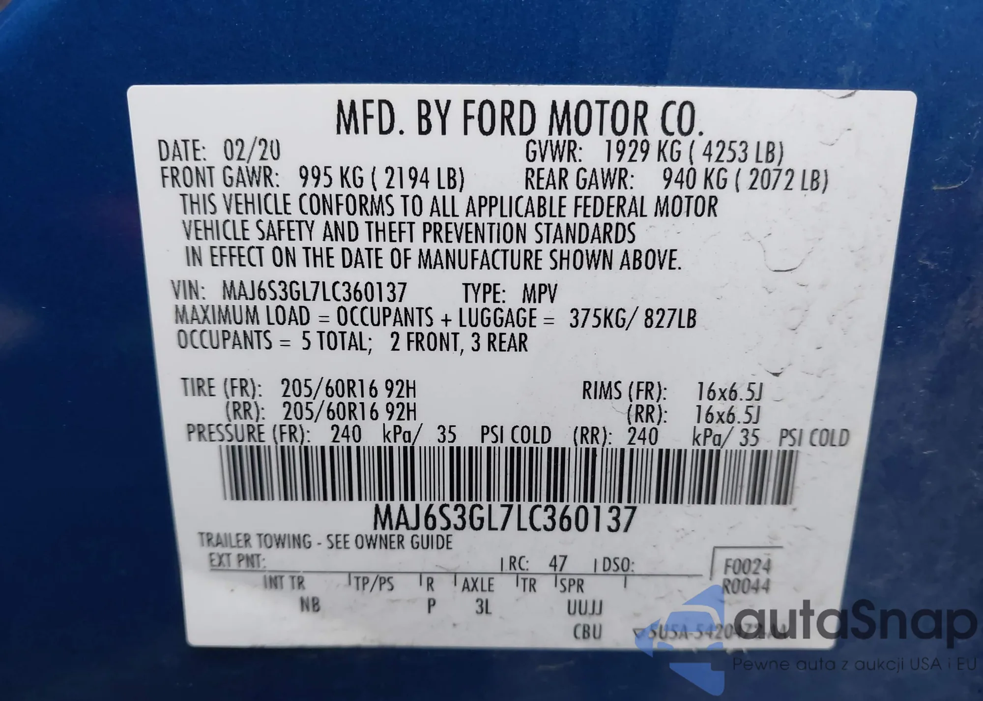 VIN: MAJ6S3GL7LC360137