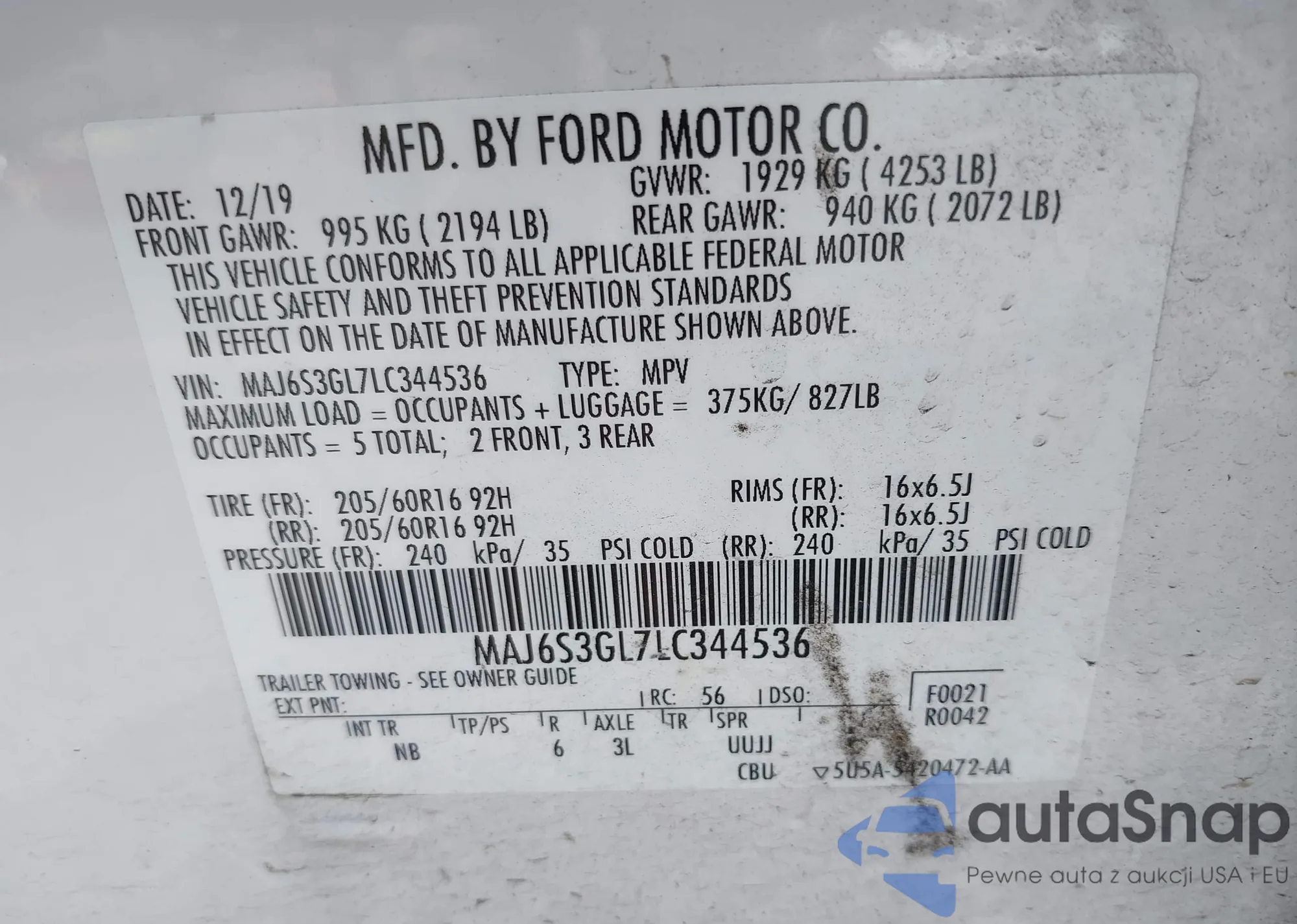 VIN: MAJ6S3GL7LC344536