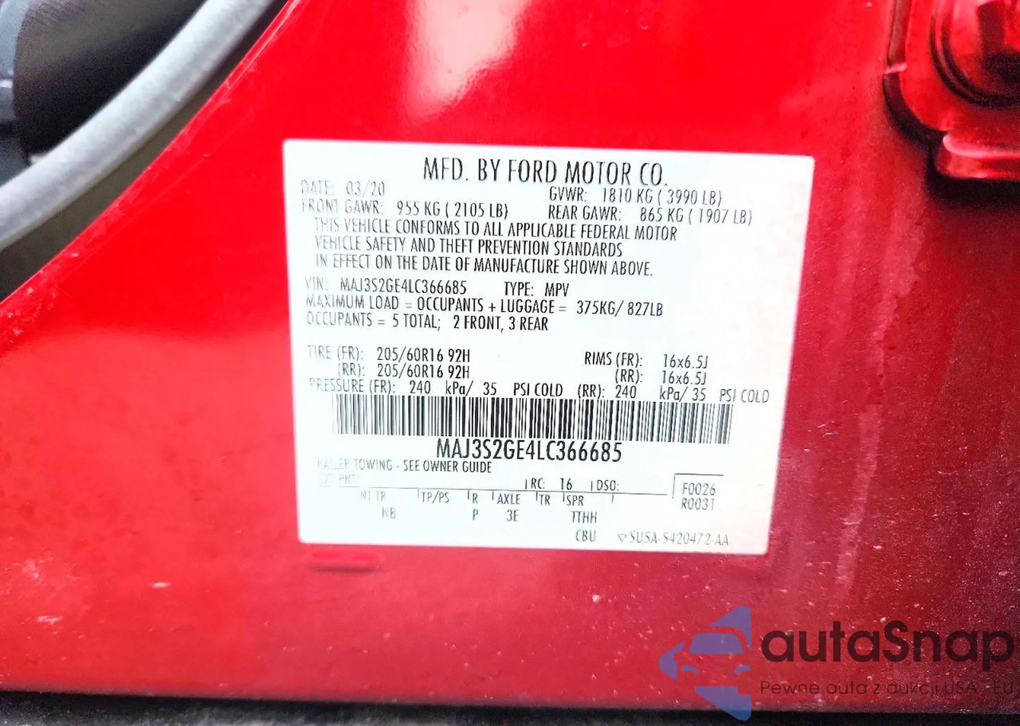 Samochód Ford EcoSport 2020 (VIN MAJ3S2GE4LC366685) sprzedaje go niezweryfikowany sprzedawca. Zalecamy raport Carfax i potwierdzenie możliwości rejestracji pojazdu przed zakupem.