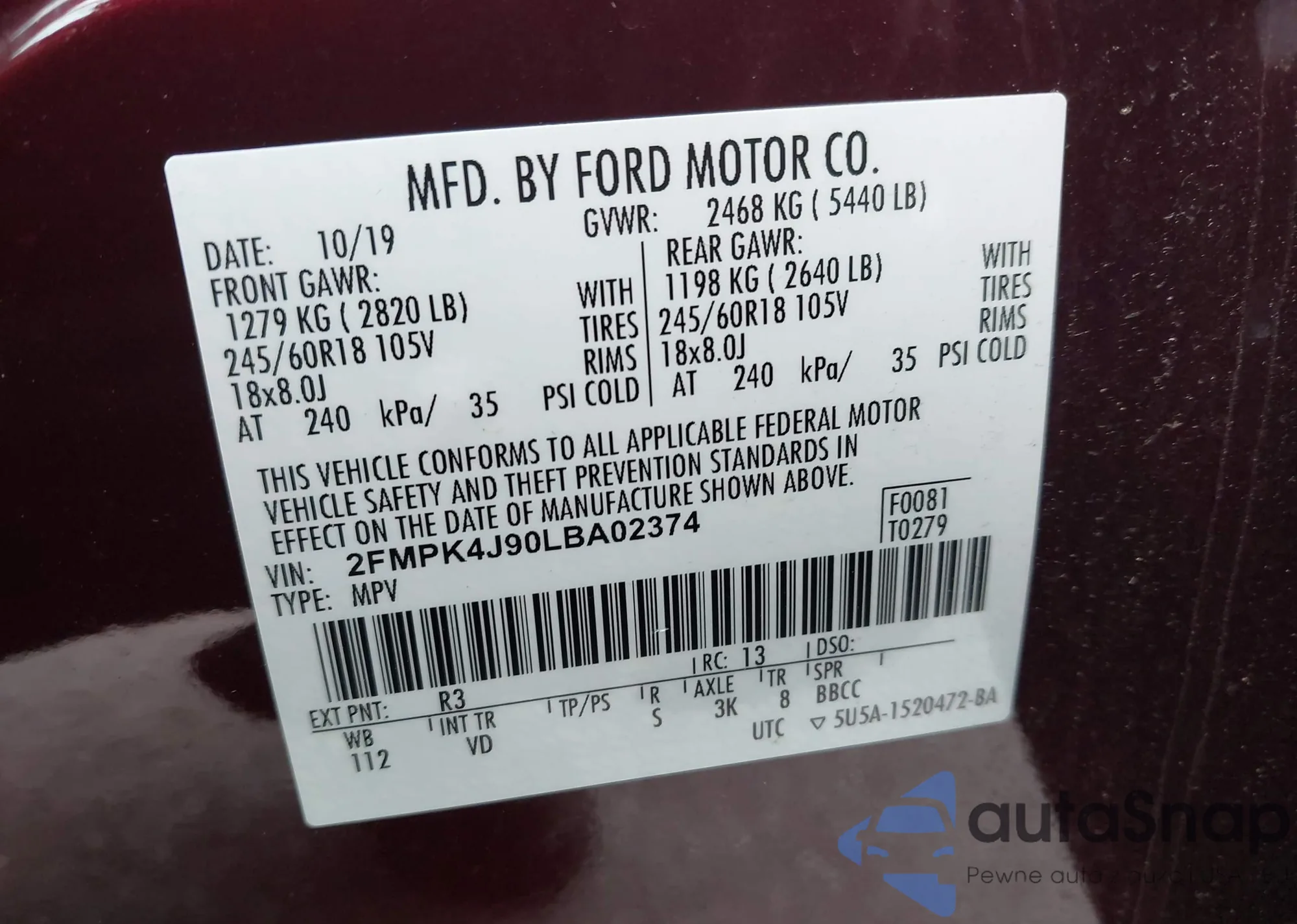 VIN: 2FMPK4J90LBA02374