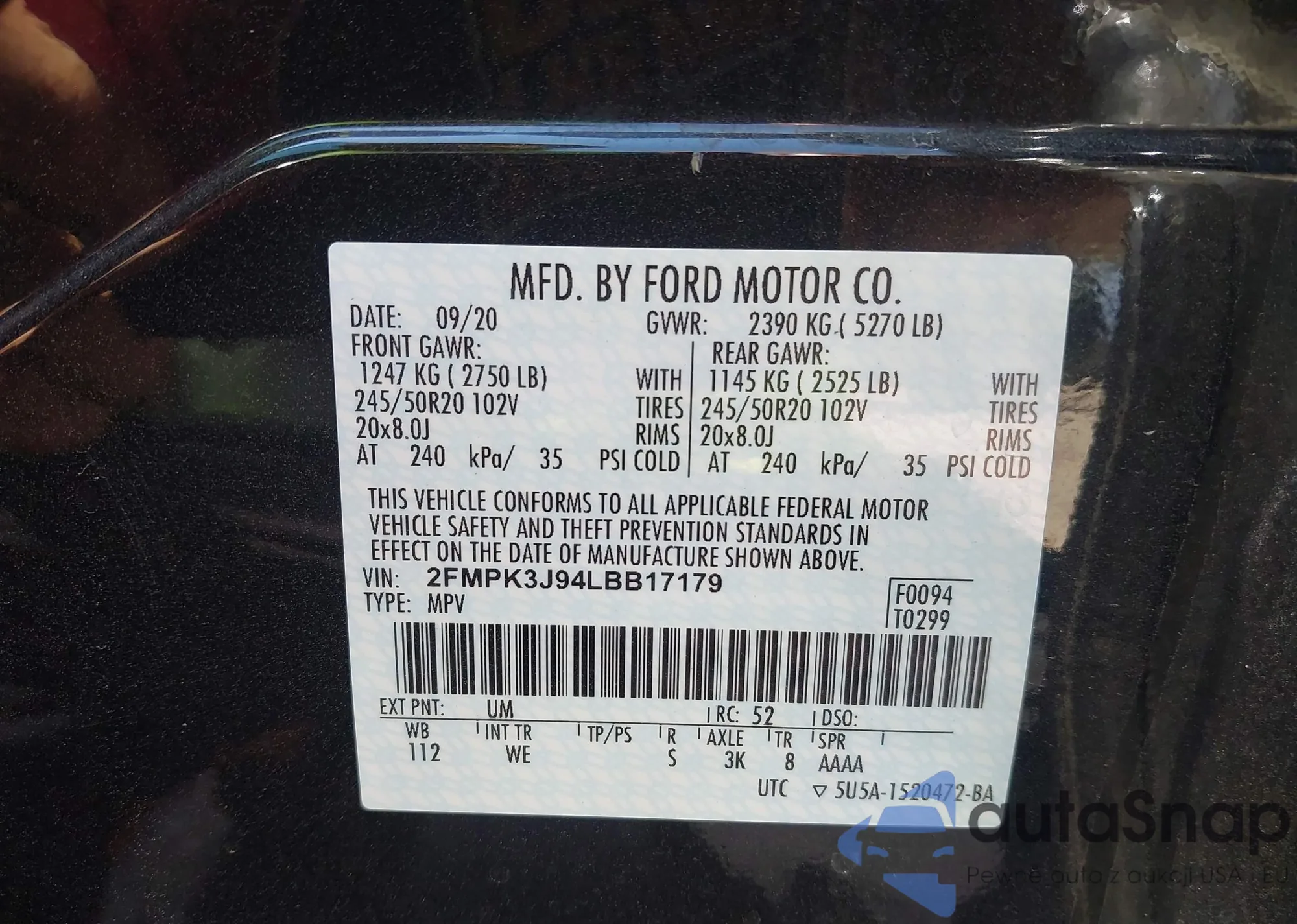 VIN: 2FMPK3J94LBB17179