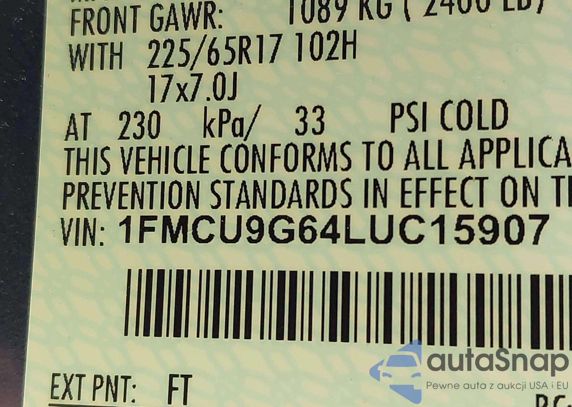 VIN: 1FMCU9G64LUC15907