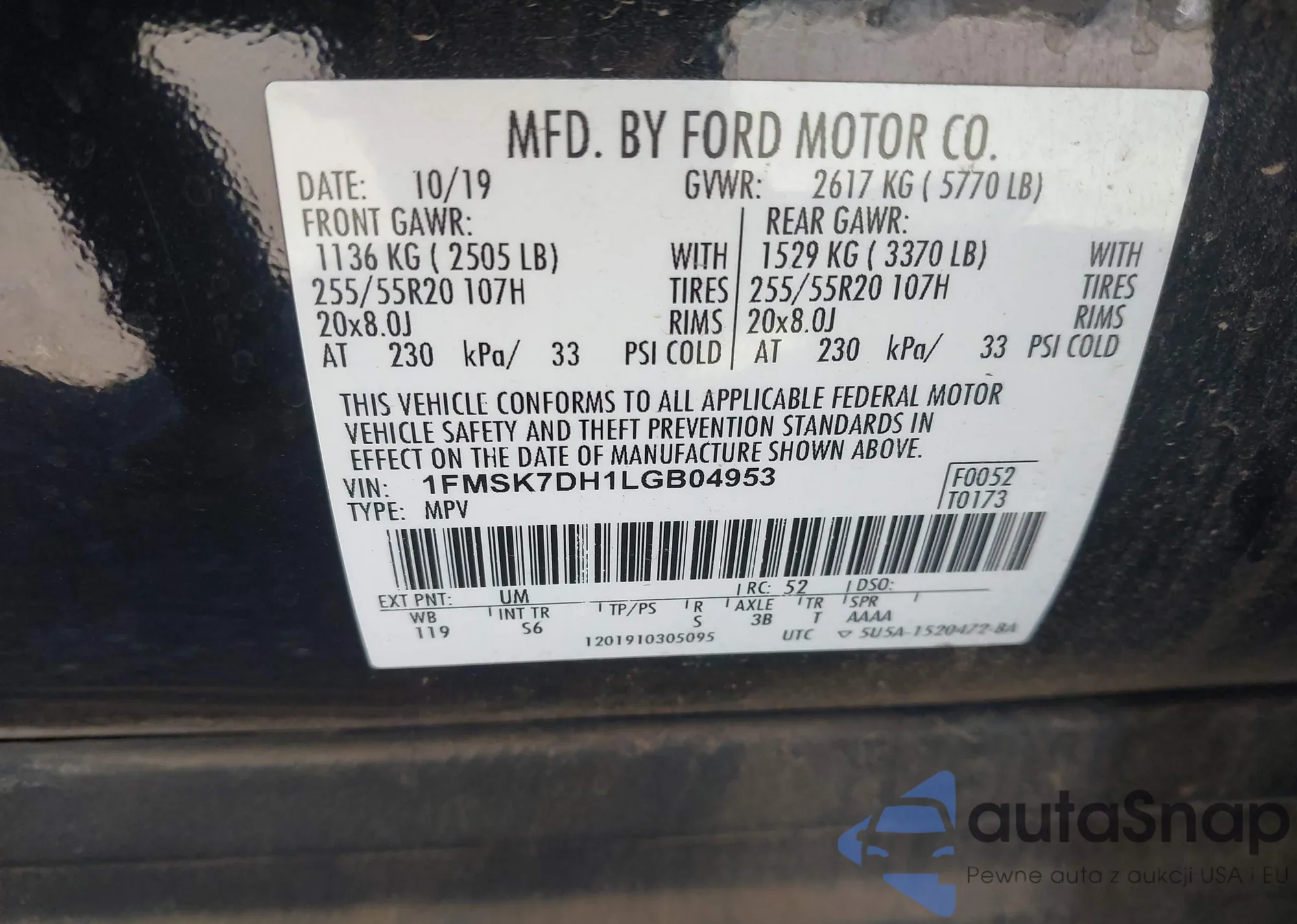 VIN: 1FMSK7DH1LGB04953
