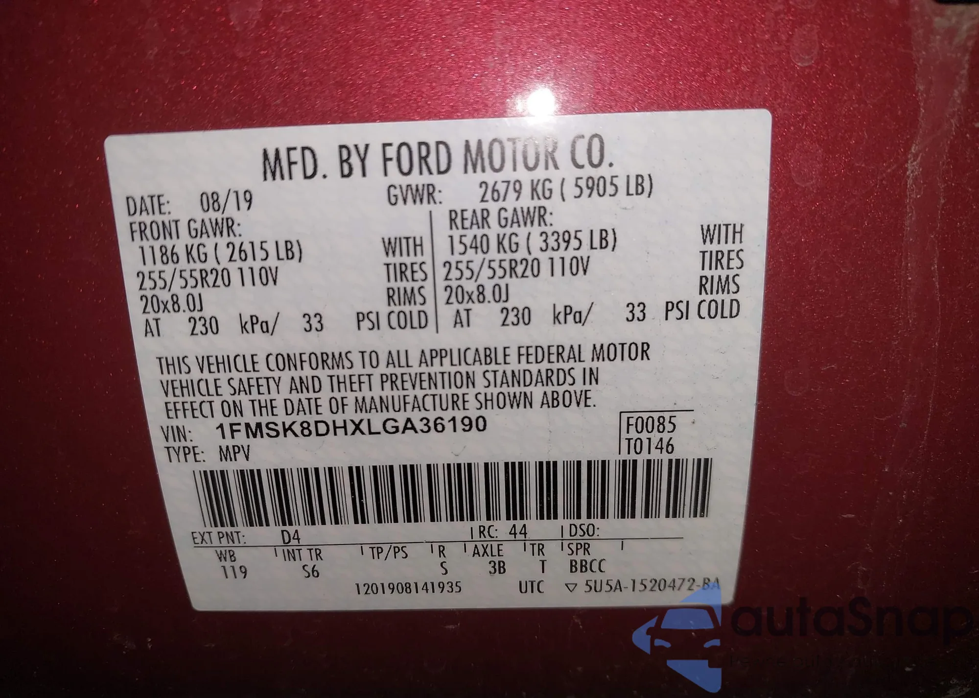 VIN: 1FMSK8DHXLGA36190