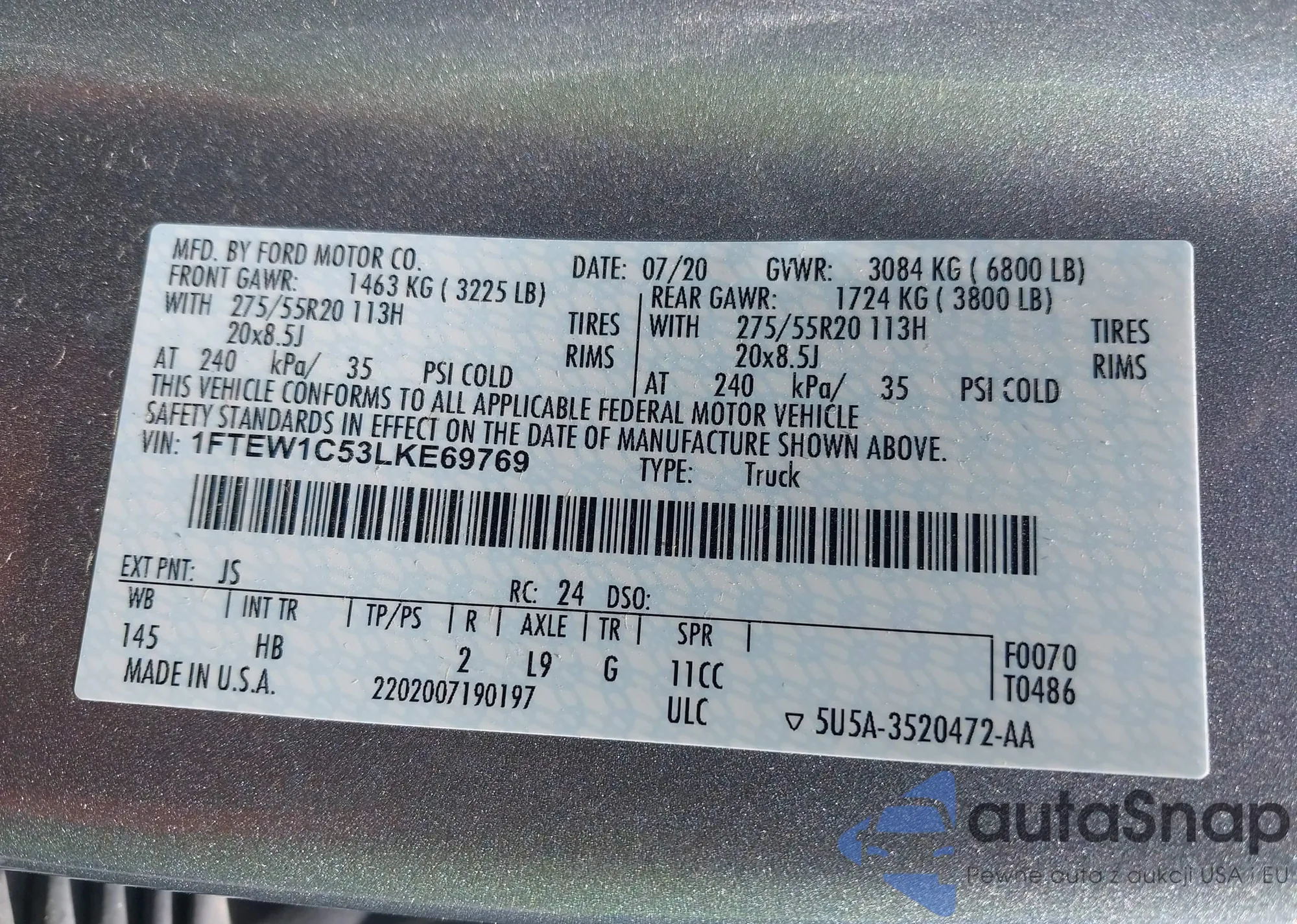 VIN: 1FTEW1C53LKE69769