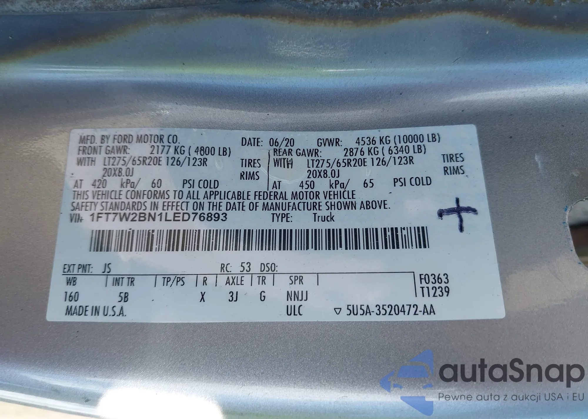 VIN: 1FT7W2BN1LED76893