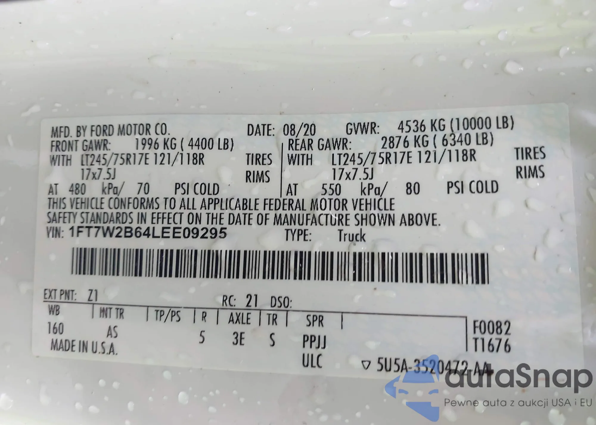 • VIN: 1FT7W2B64LEE09295