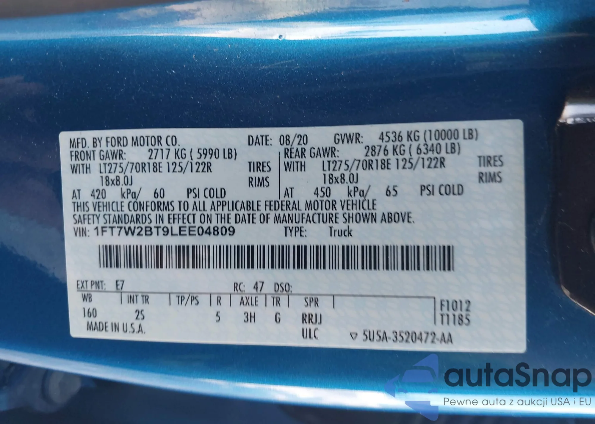VIN: 1FT7W2BT9LEE04809
