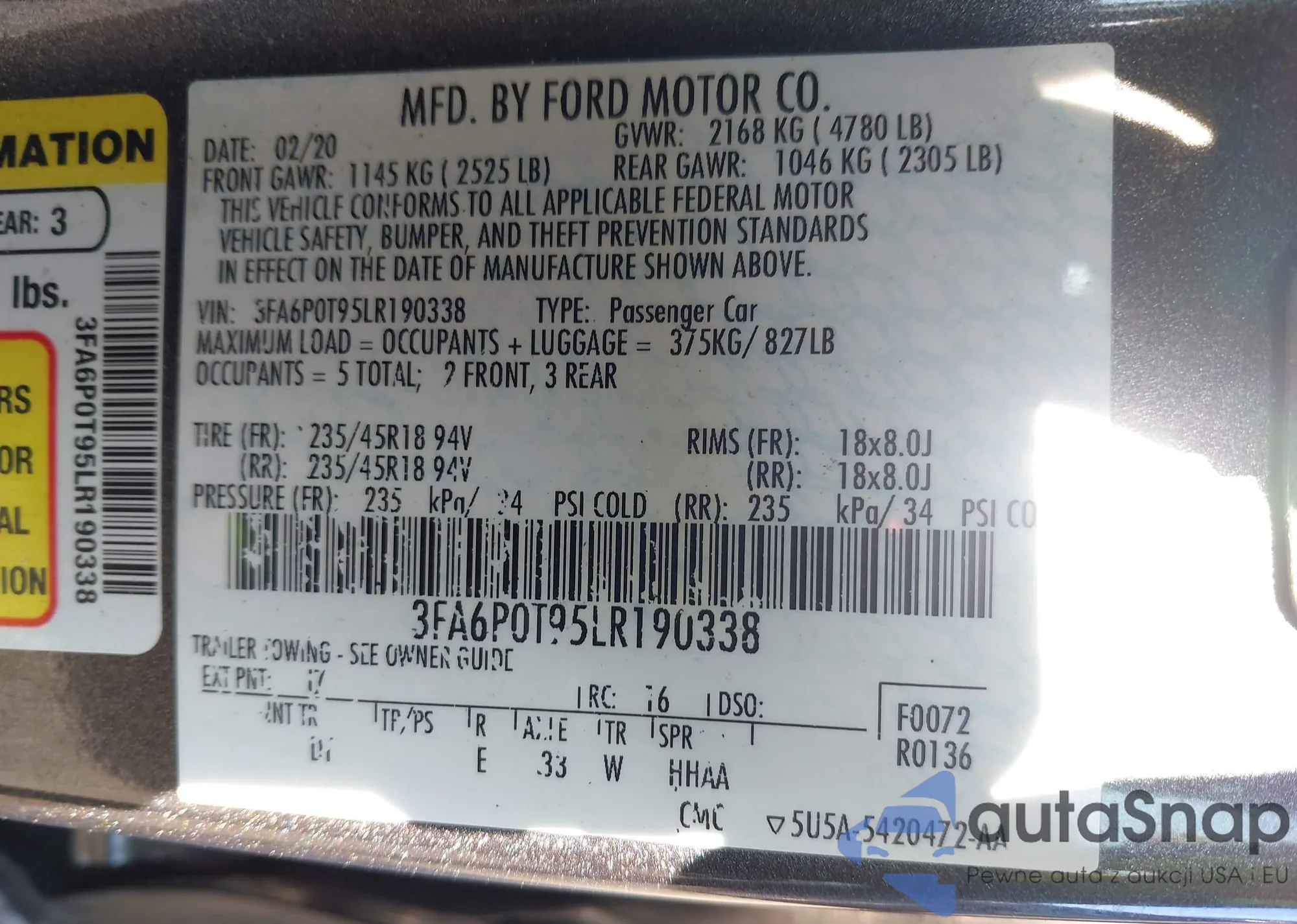 • VIN: 3FA6P0T95LR190338