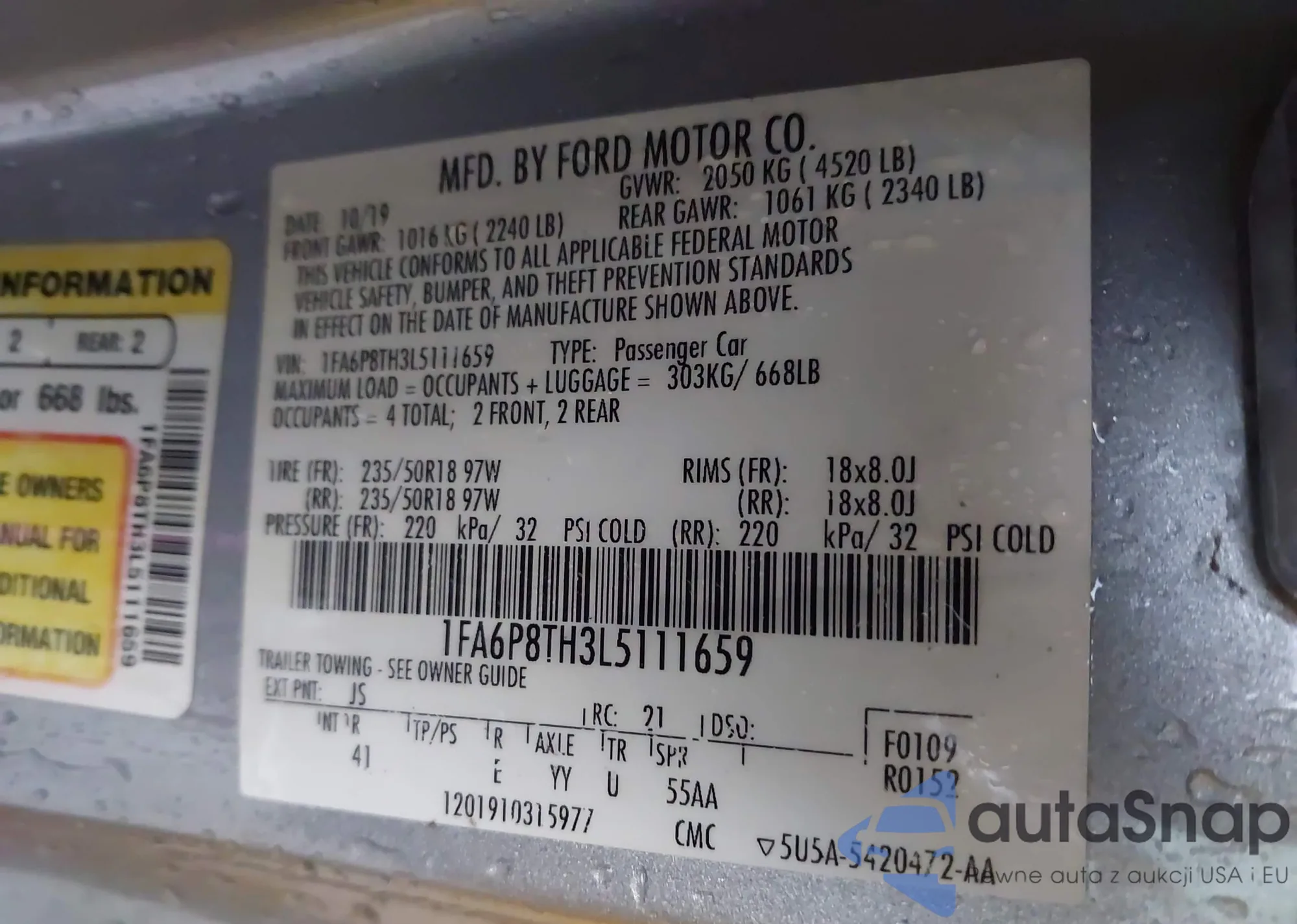 VIN: 1FA6P8TH3L5111659